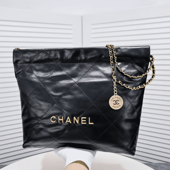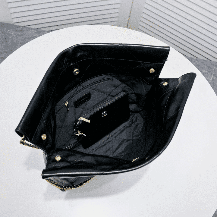 Chanel 22 Handbag Shiny And Gold Tone Metal Black 42Cm As3261 B19059 94305