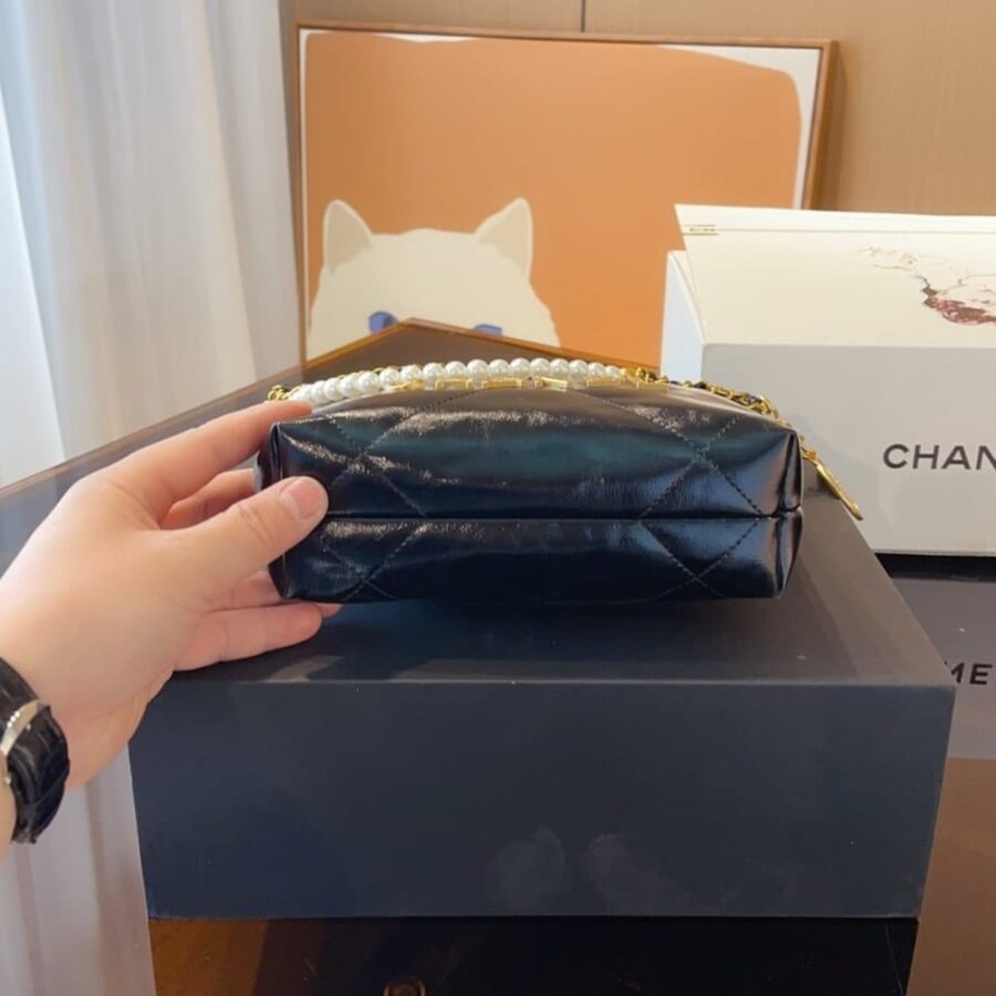 Chanel 22 Mini Handbag Shiny Crystal Pearls Gold Tone Metal Black 22Cm As3980 B10672 94305
