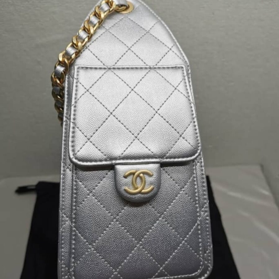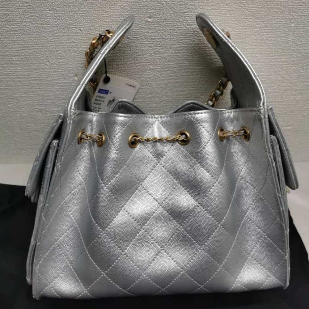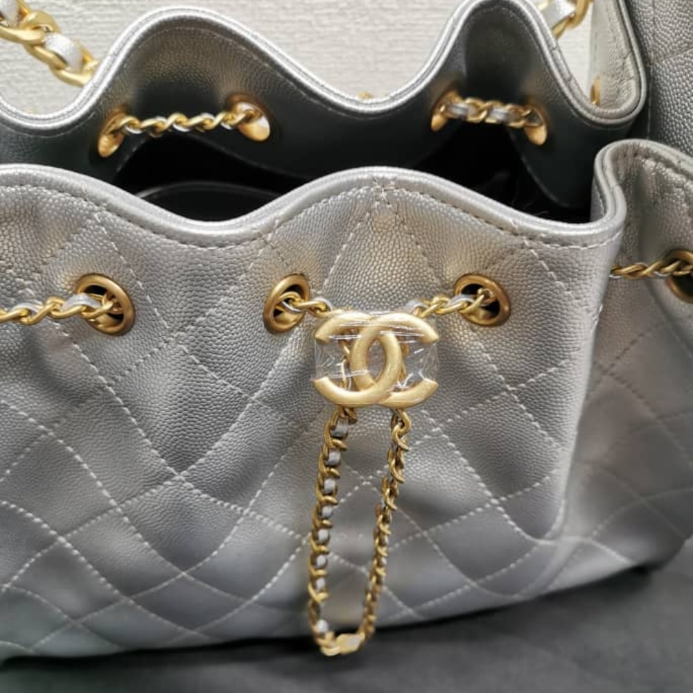 This iconic Chanel bag is a timeless piece of luxury, designed with quilted leather and a signature gold-tone chain strap. Featuring a stylish drawstring closure, it offers a perfect balance of elegance and functionality. Ideal for both day-to-night wear, this bag adds a chic, refined touch to any outfit. Enhance your collection with this classic piece that blends beauty, craftsmanship, and practicality.