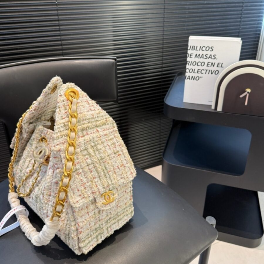 This iconic Chanel bag is a timeless piece of luxury, designed with quilted leather and a signature gold-tone chain strap. Featuring a stylish drawstring closure, it offers a perfect balance of elegance and functionality. Ideal for both day-to-night wear, this bag adds a chic, refined touch to any outfit. Enhance your collection with this classic piece that blends beauty, craftsmanship, and practicality.