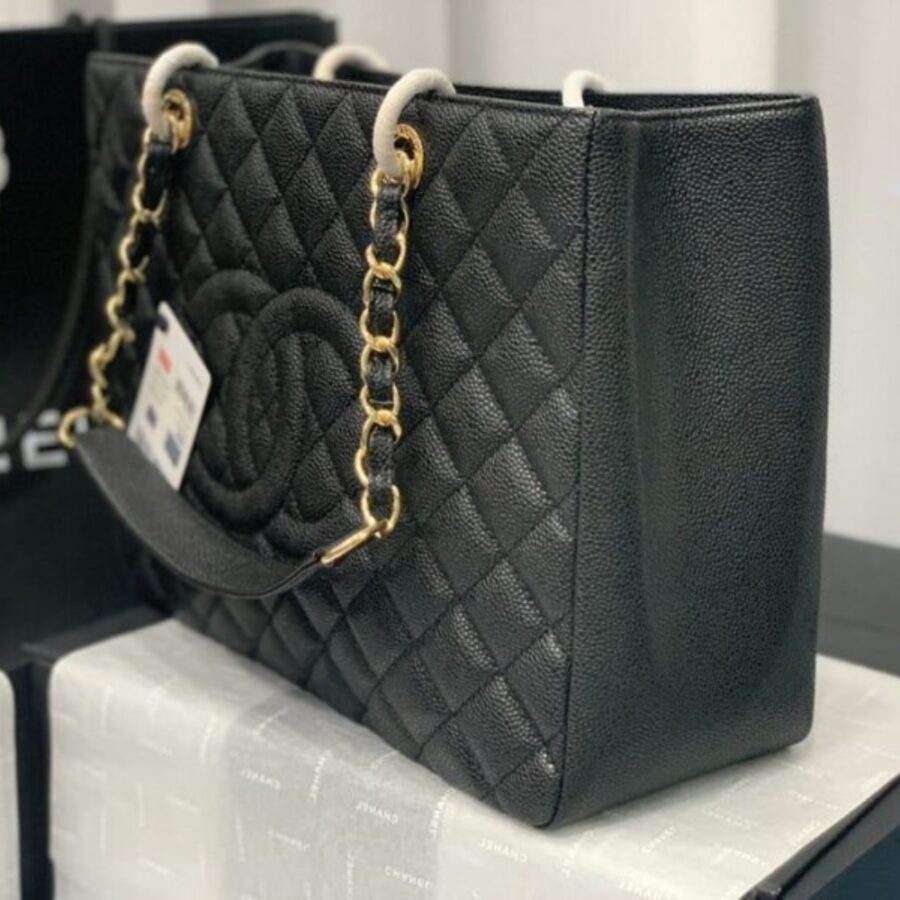 This Chanel tote bag is crafted from premium quilted leather, showcasing the iconic CC logo for a timeless luxury look. Designed with a spacious interior and elegant chain-and-leather shoulder straps, it offers both style and everyday practicality. A classic designer handbag, perfect for work, shopping, or daily wear, it brings effortless sophistication to any outfit.