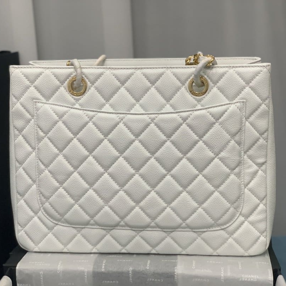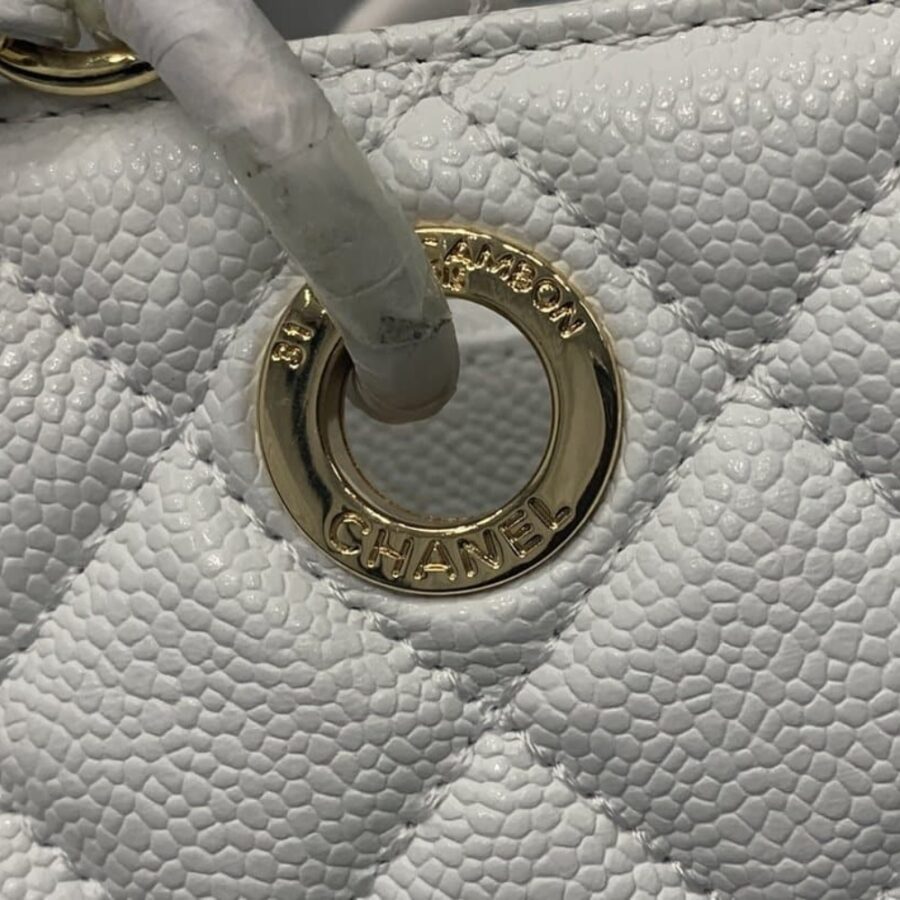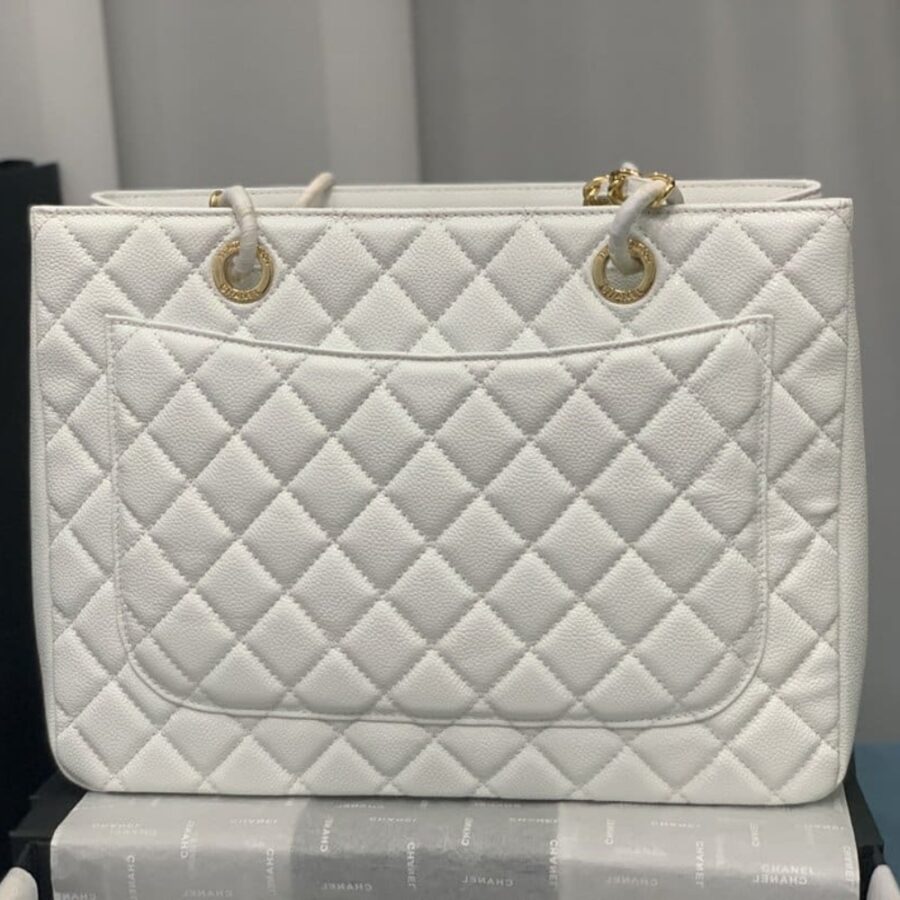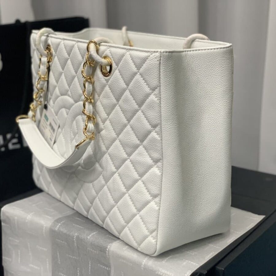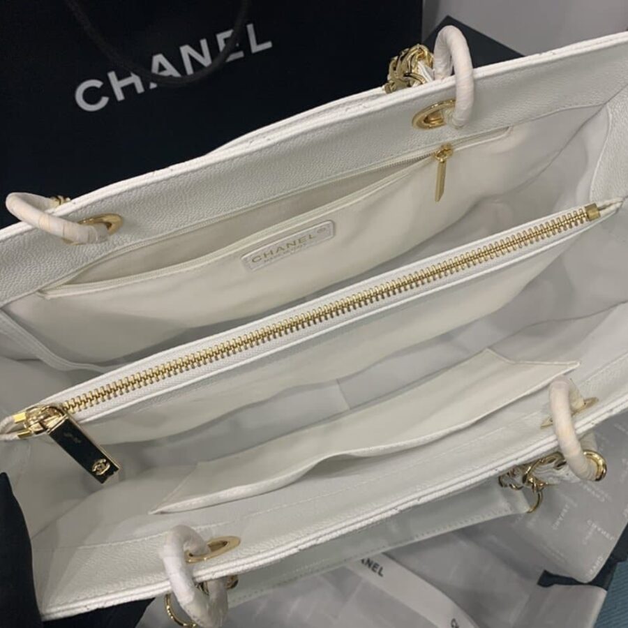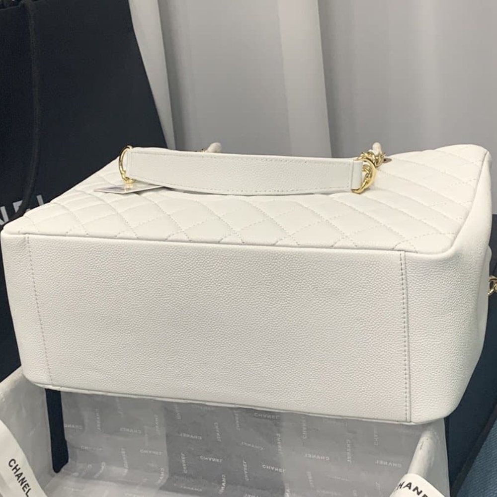 Chanel Bolsa Grand Tote Gold Hardware White 33Cm
