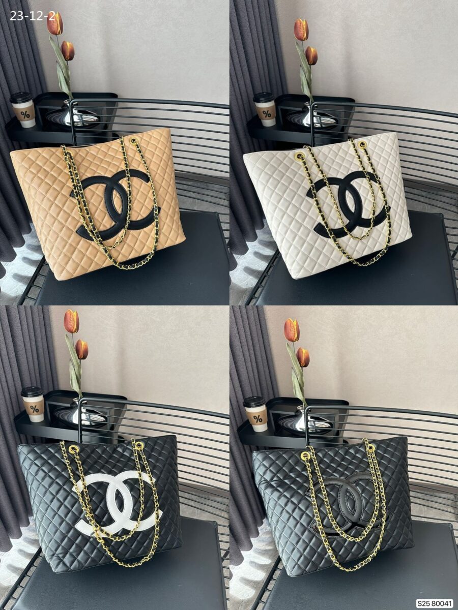 Chanel Cc Shopping Bag With Chain Leather White 32Cm