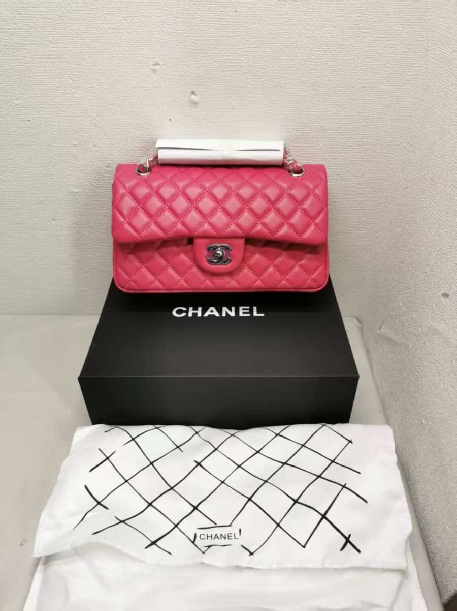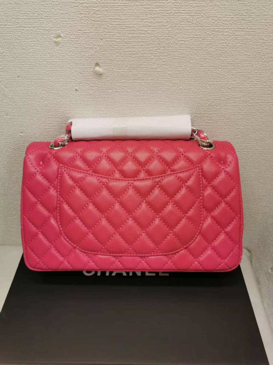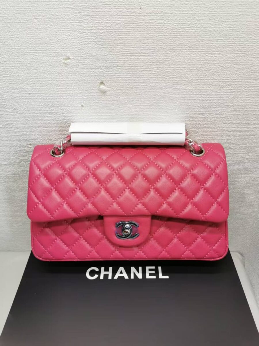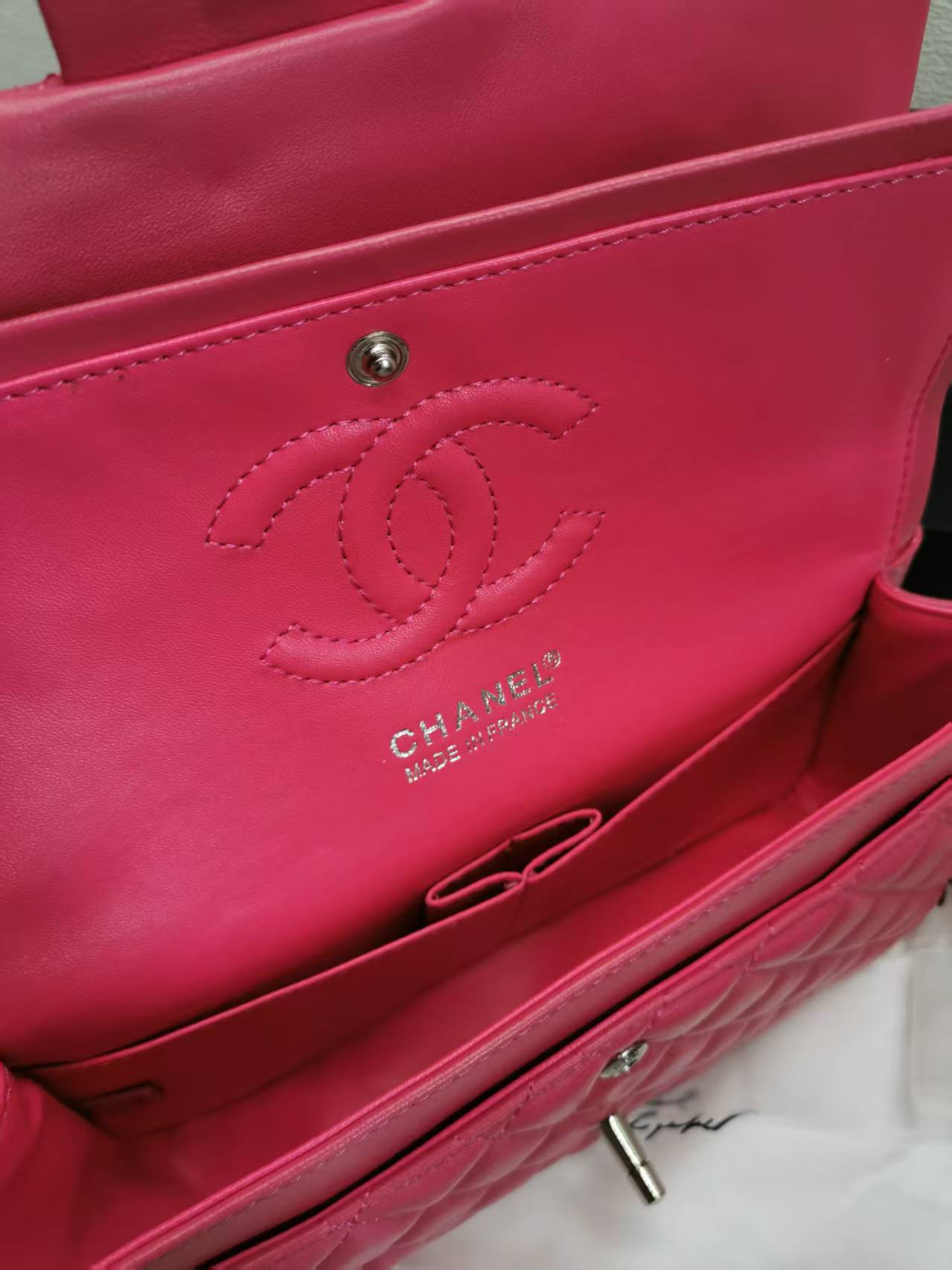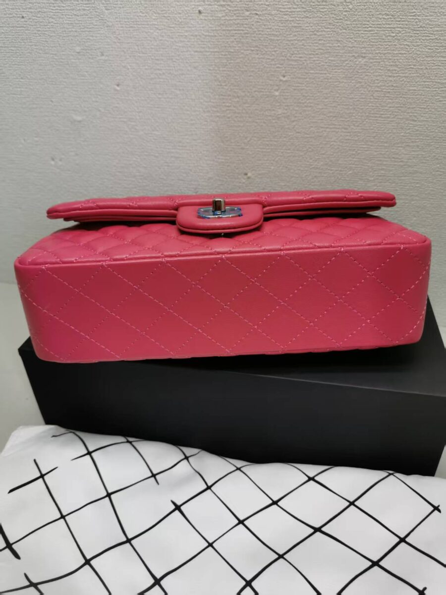 Chanel Classic Medium Flap Bag With Silver Hardware Dark Pink / 25 cm / 9.8 inches.