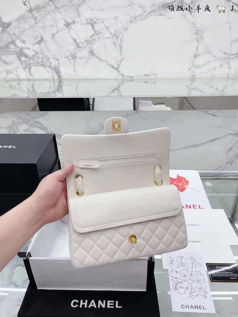 Chanel Classic Mini Flap Gold Hardware White 25Cm