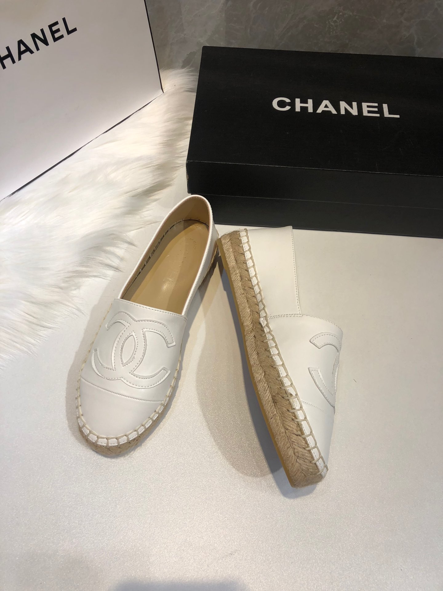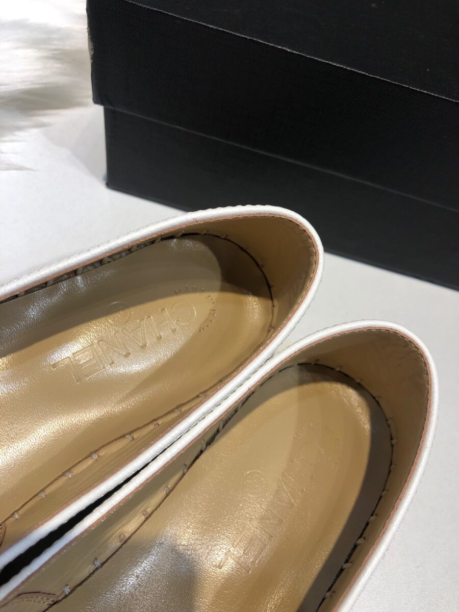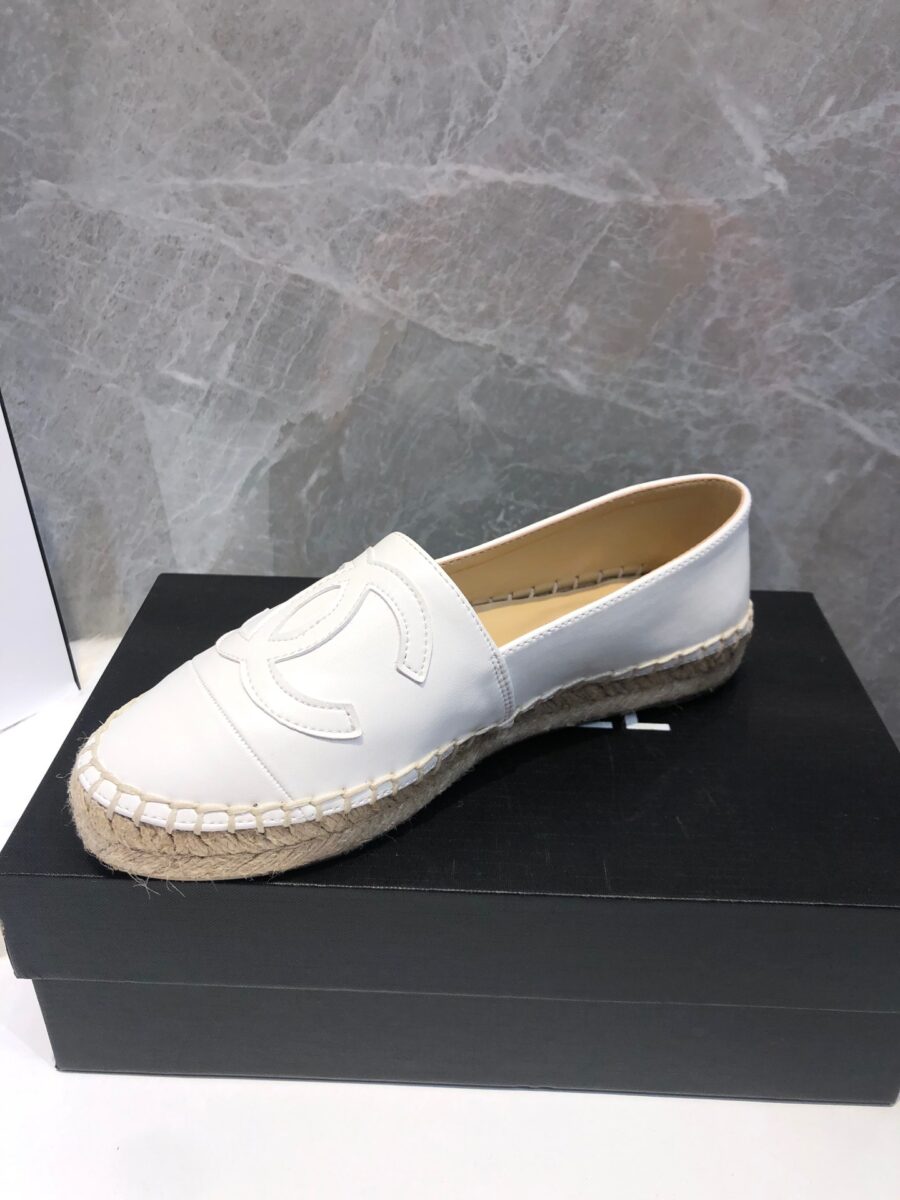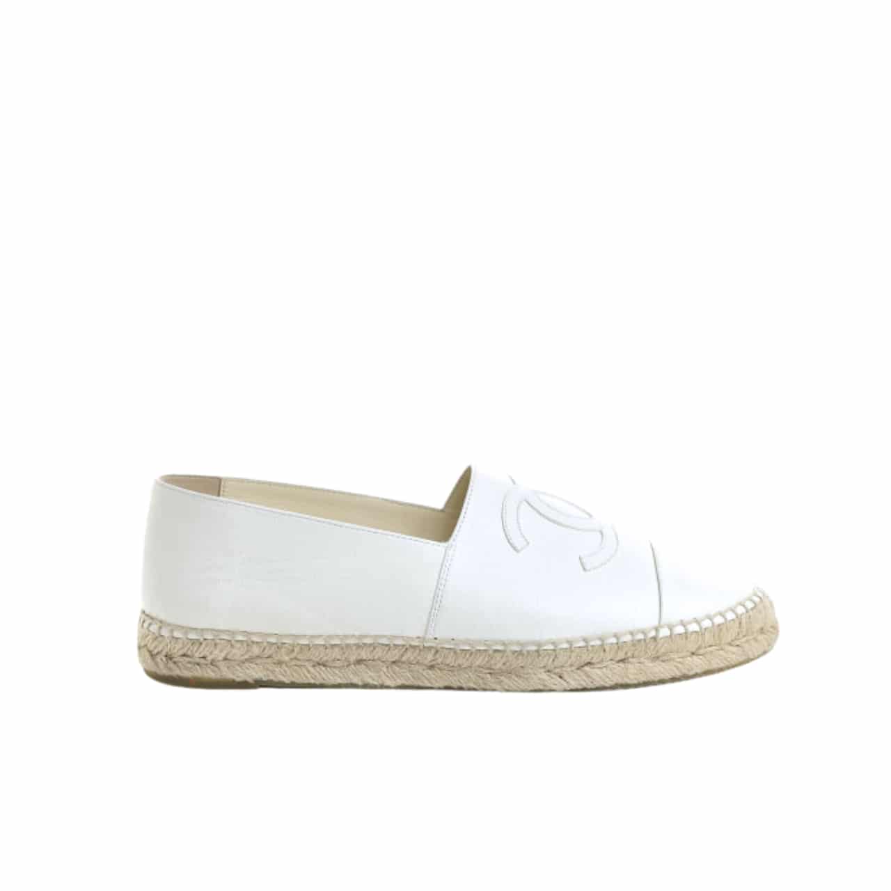 Chanel Embroidered Espadrille Leather Cap Toe Flats White