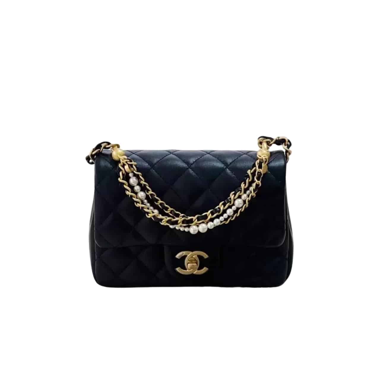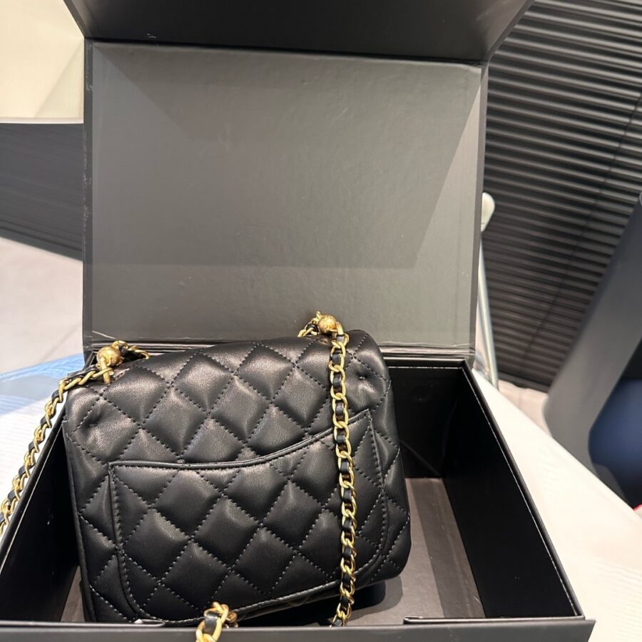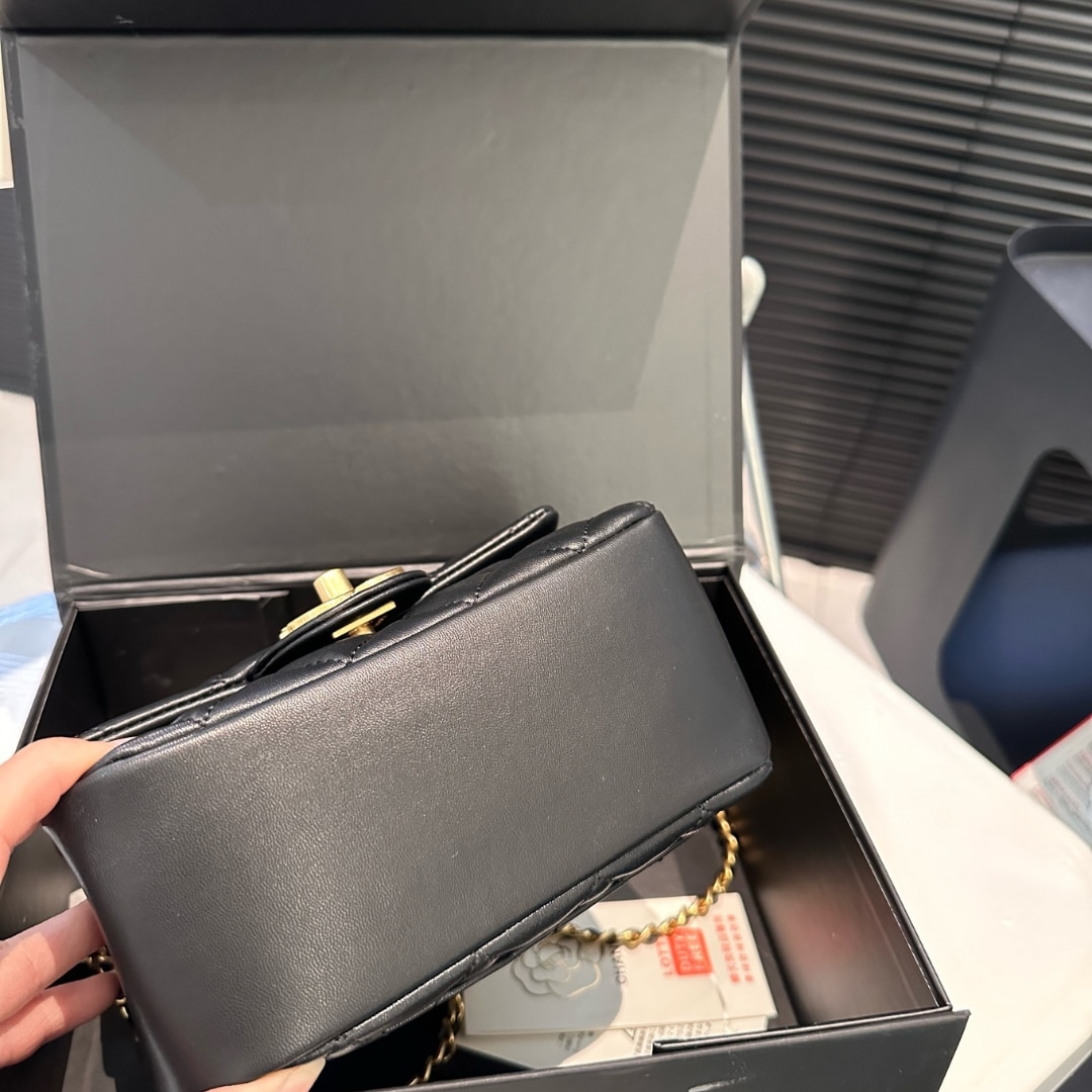 Chanel//Flap Bag Gold Hardware With Chain//Black//17cm