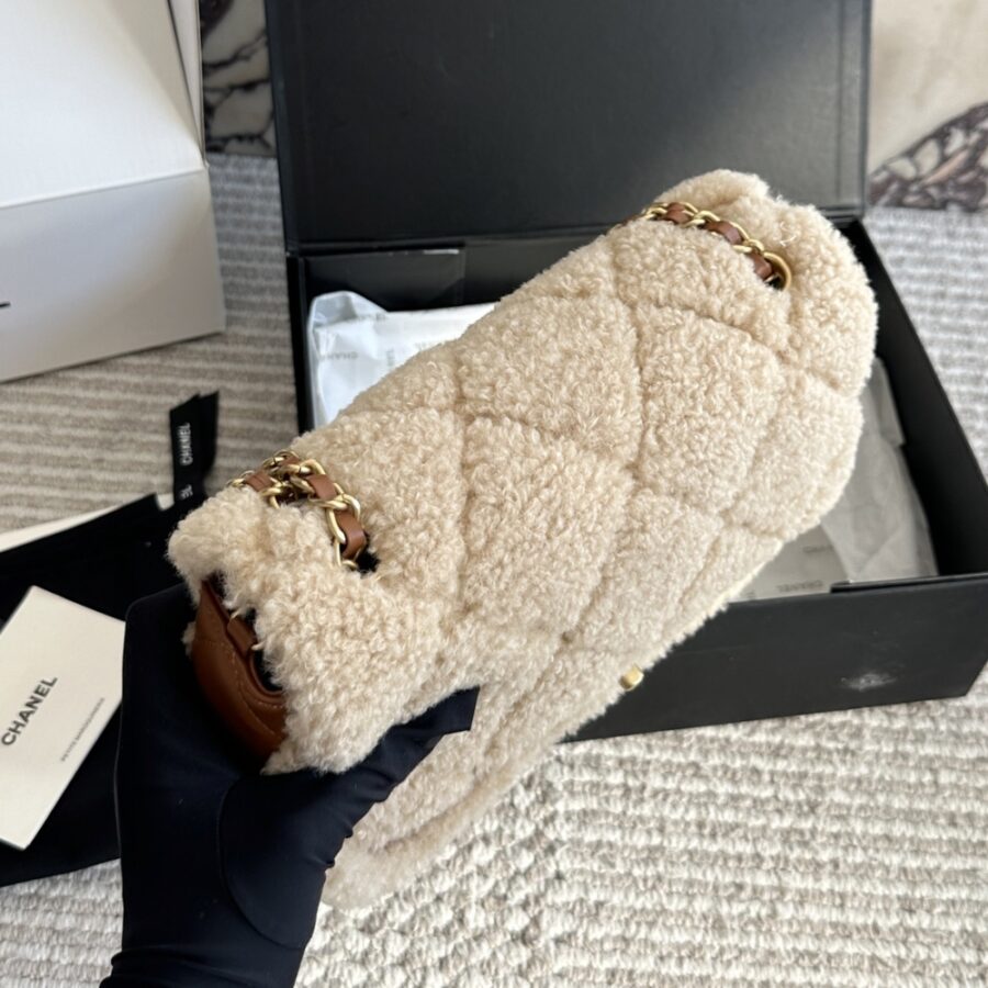 Chanel Flap Bag Shearling Beige & Brown 23cm AS5149 B18194 NZW48
