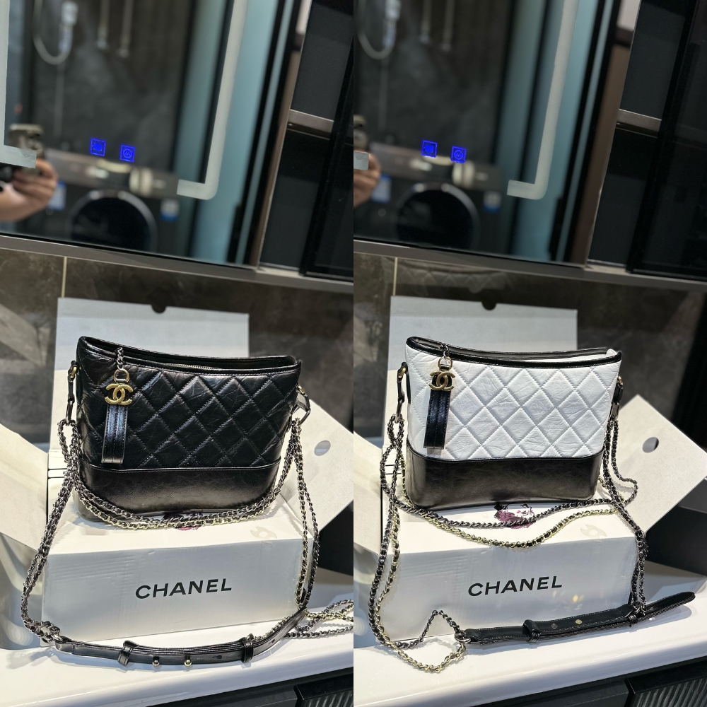 Chanel Gabrielle Small Hobo Bag Smooth Gold Silver Tone Black 20Cm A91810 Y61477 94305