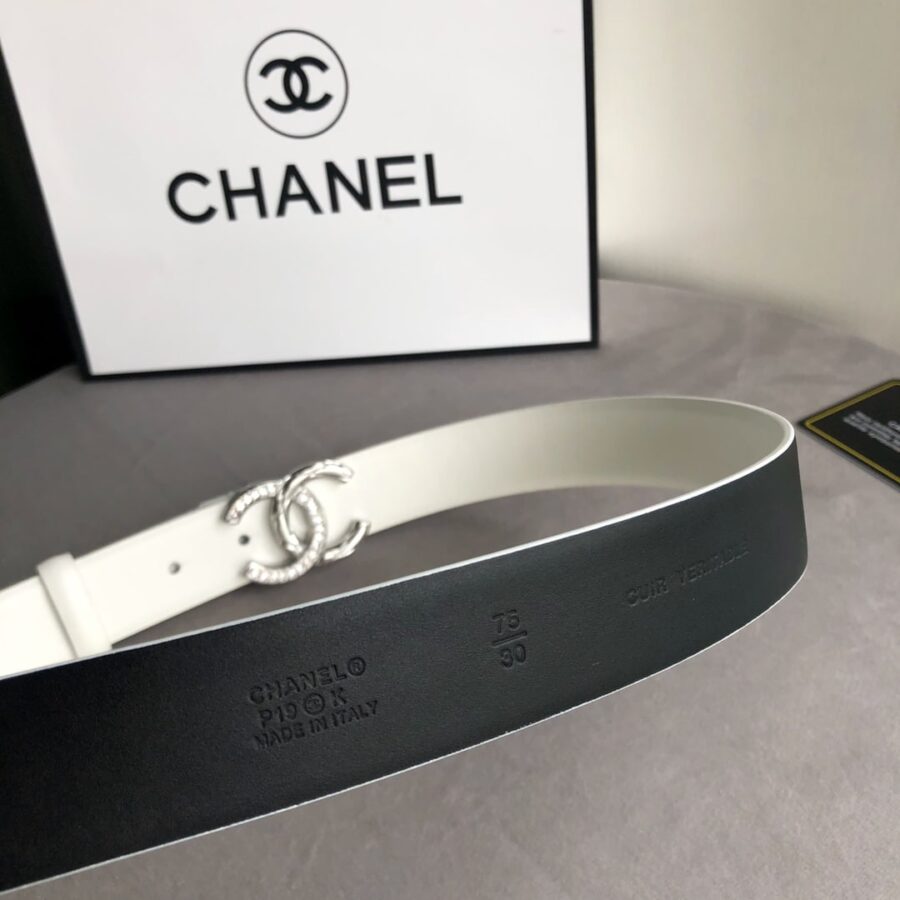 Chanel Leather Belt With Cc Pearl And Silver Tone Metal White 3Cm