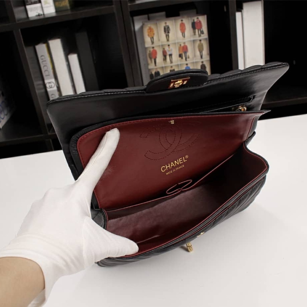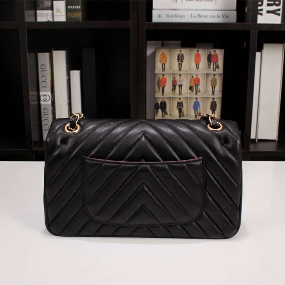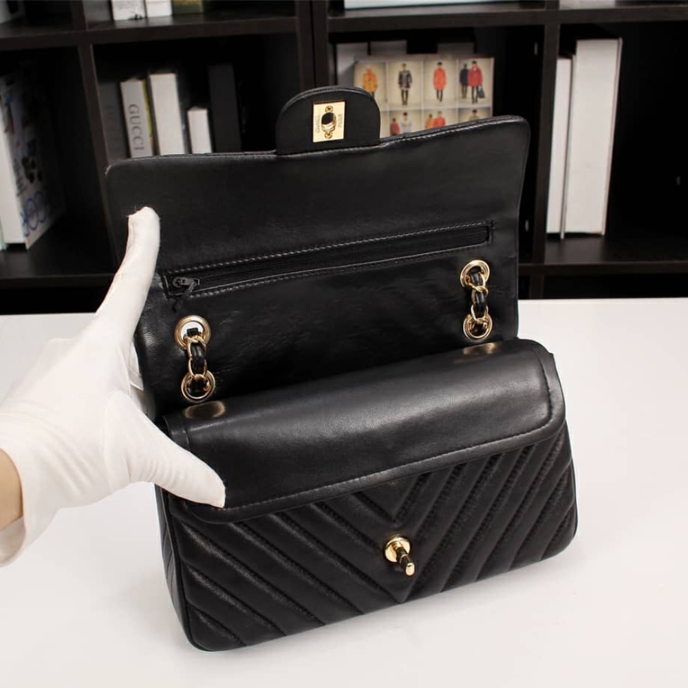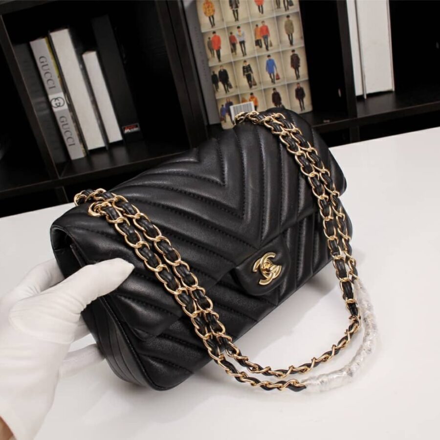 Chanel Medium Classic Flap Chevron Black / 25cm / 9.8inches