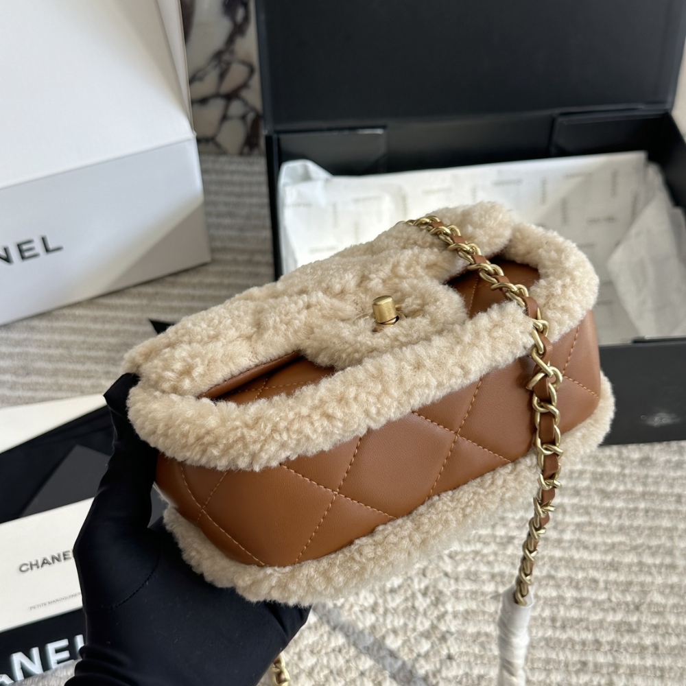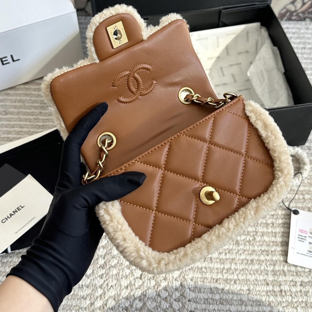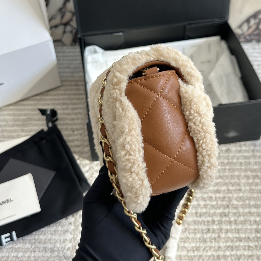 Chanel Mini Flap Bag Shearling Beige & Brown 18cm AS5148-B18194-NZW48