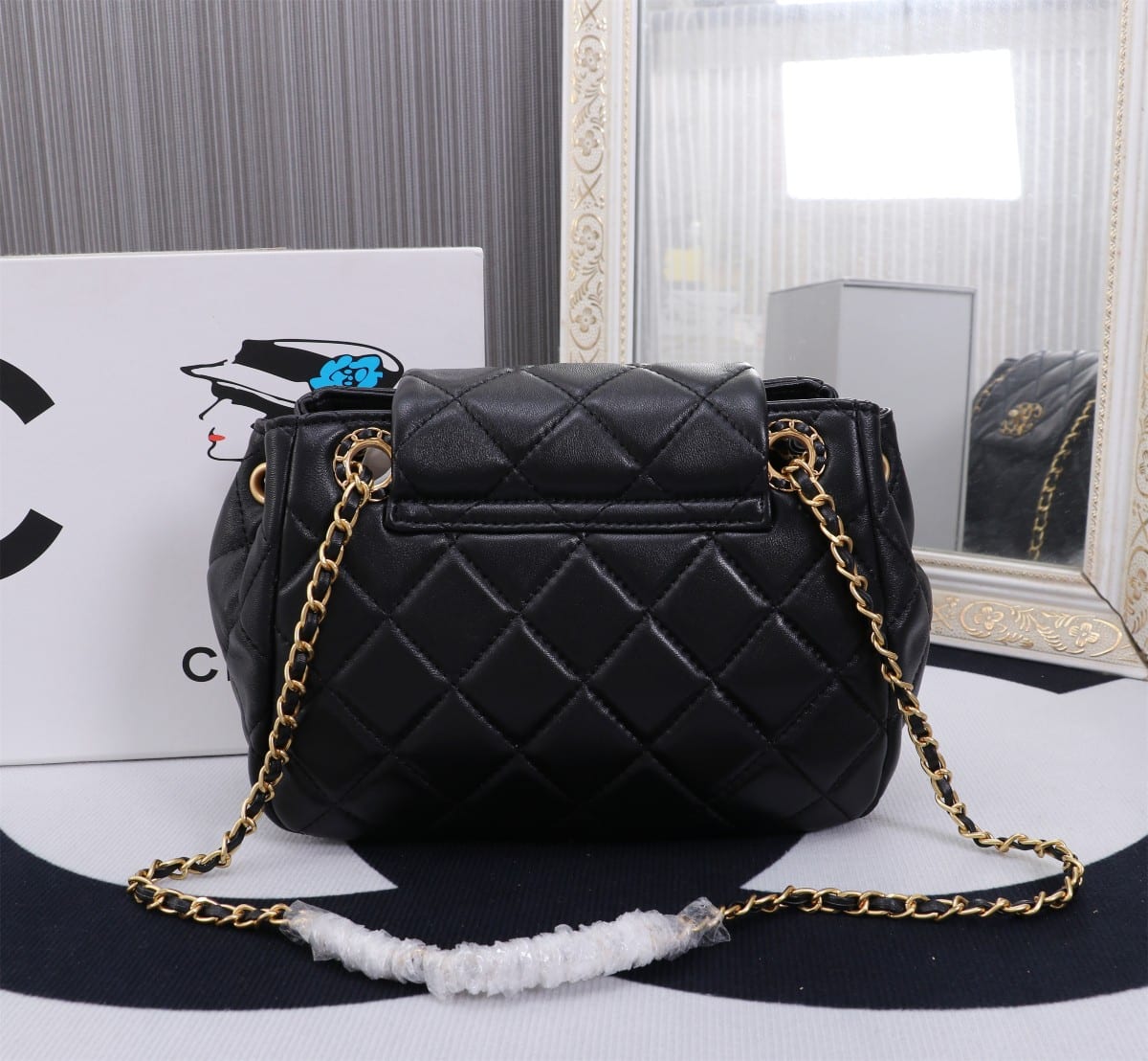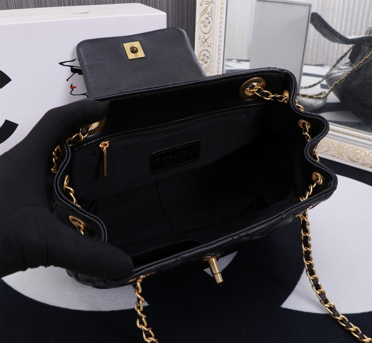 Chanel //Mix Accordion Cc Flap Bag Quilted Glazed //Black//23cm