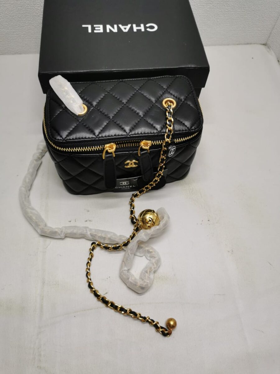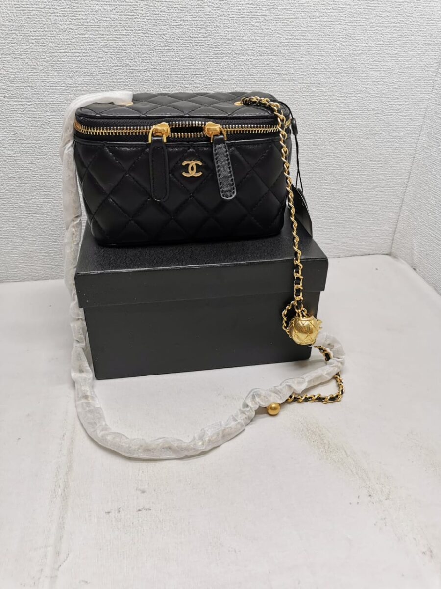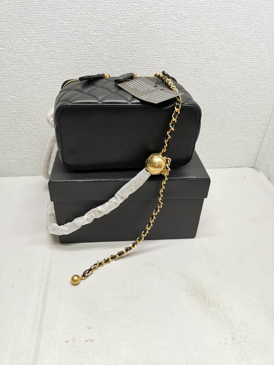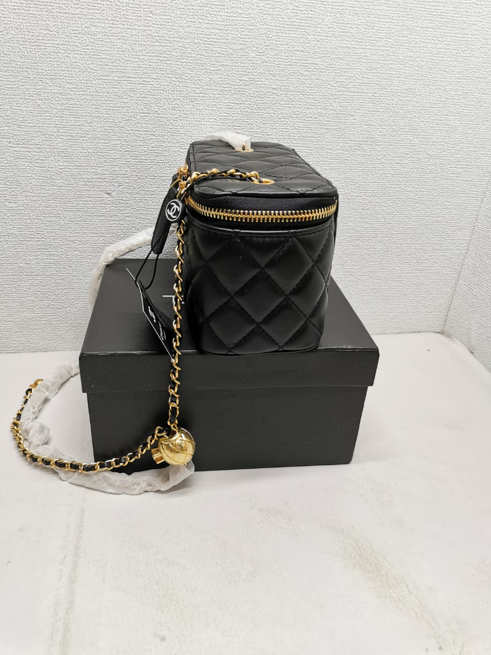 Chanel//Pearl Crush Vanity Case With Chain//Black//17cm