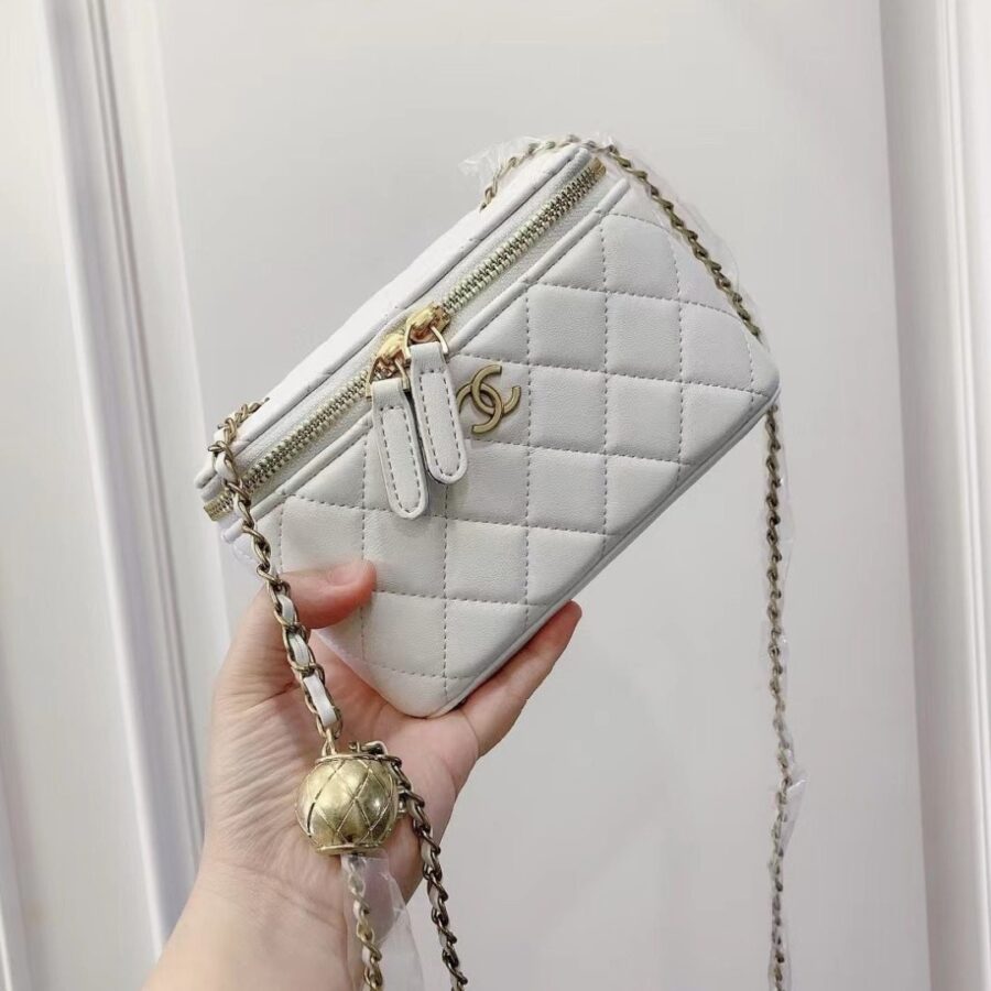 Chanel//Pearl Crush Vanity Case With Chain//White//17cm