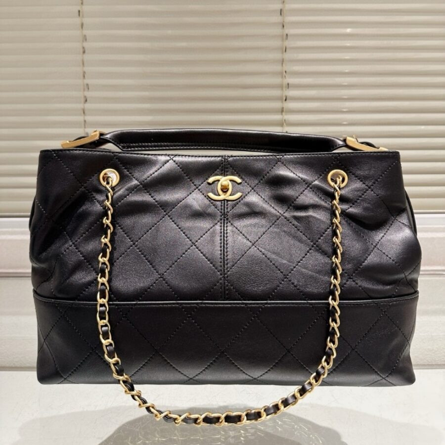 Chanel Shopping Bag Gold Tone Mental Black 36Cm AS5657 B20829 94305