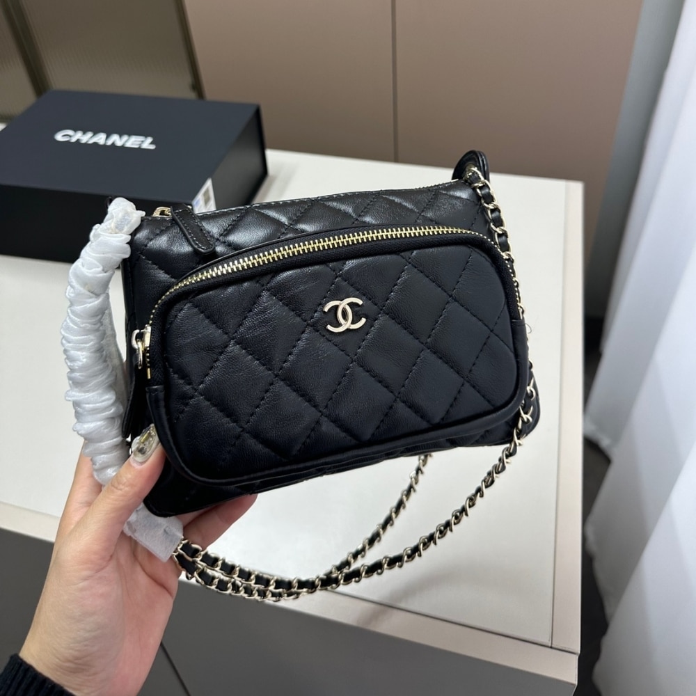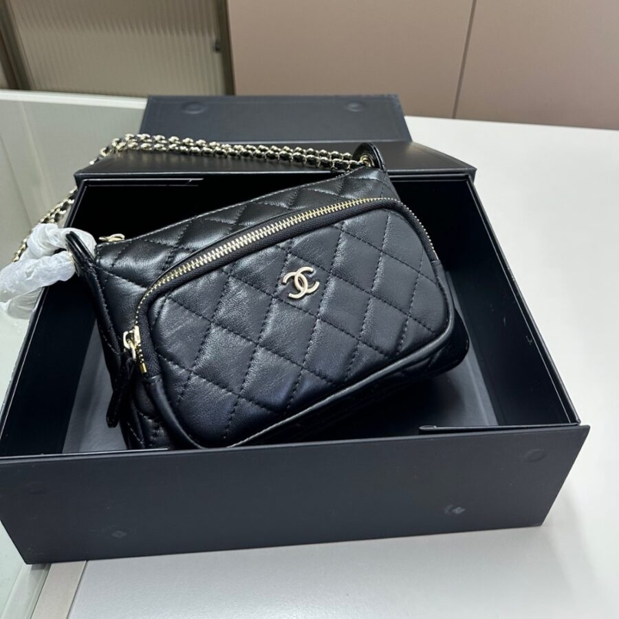 Chanel Shoulder Crossbody Bag With Chain Black 20cm