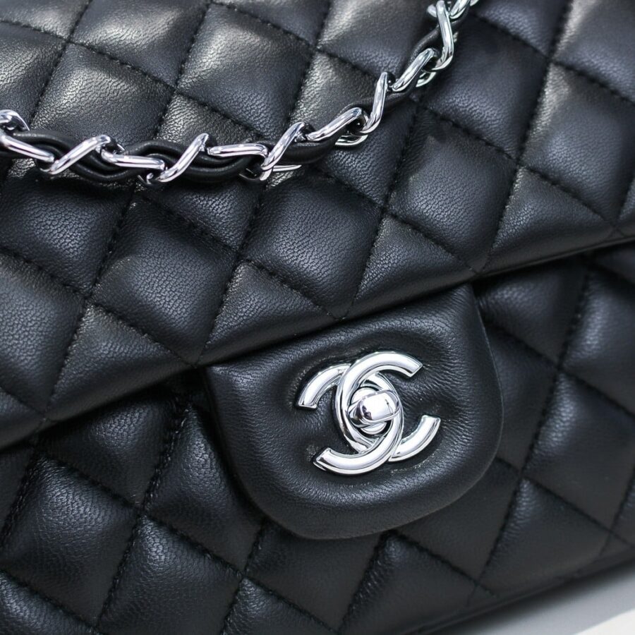 Chanel //Small Classic Flap Bag Black Leather With Silver Hardware A01113 Y01480 94305 //25cm / 9.8 inches