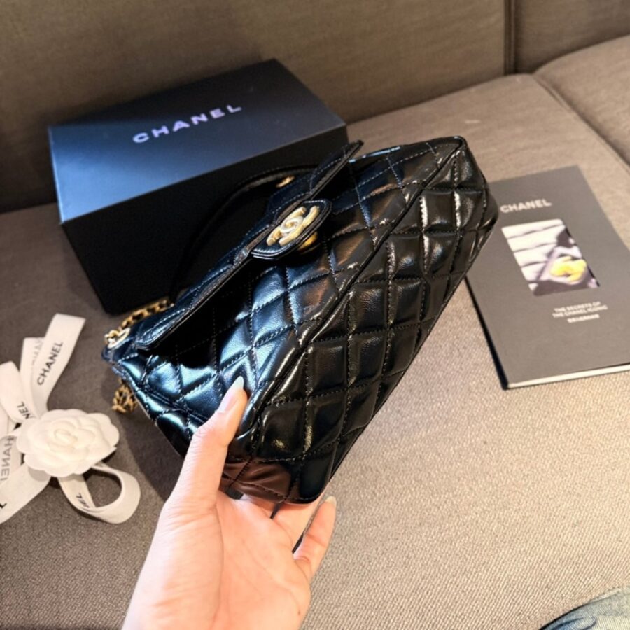 Chanel Small Hobo Bag In Shiny Leather Gold Black 24Cm