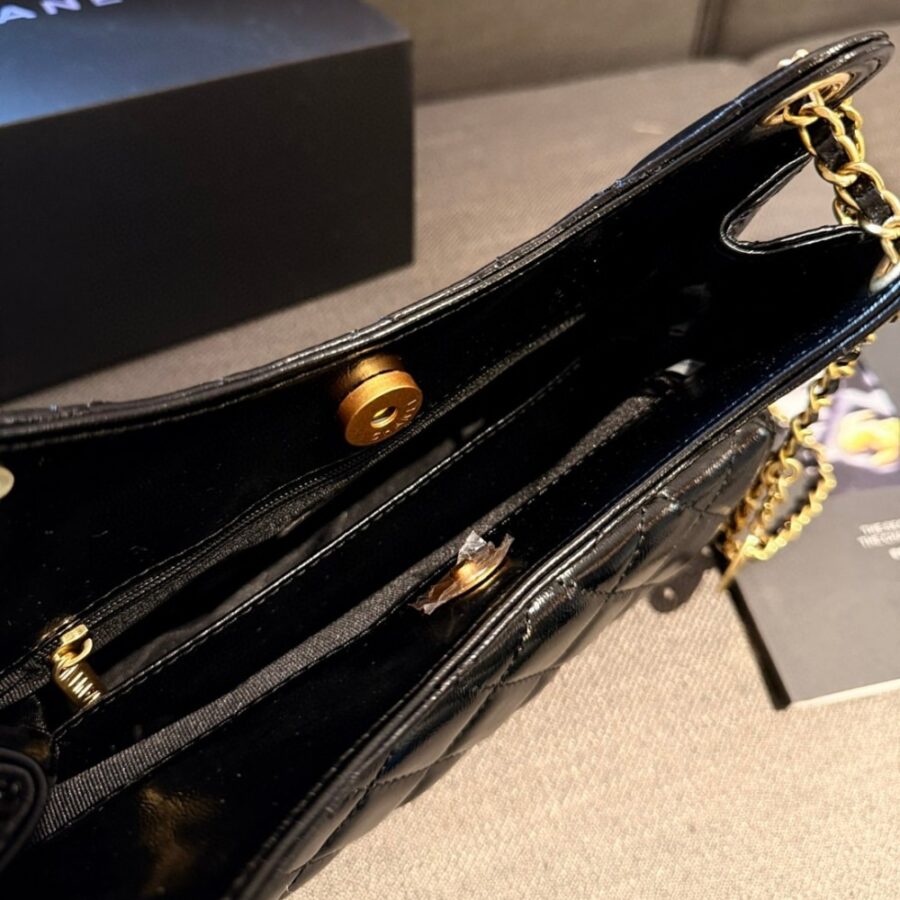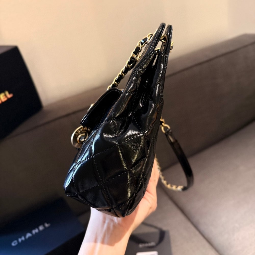 Chanel Small Hobo Bag In Shiny Leather Gold Black 24 cm / 9.5 inches