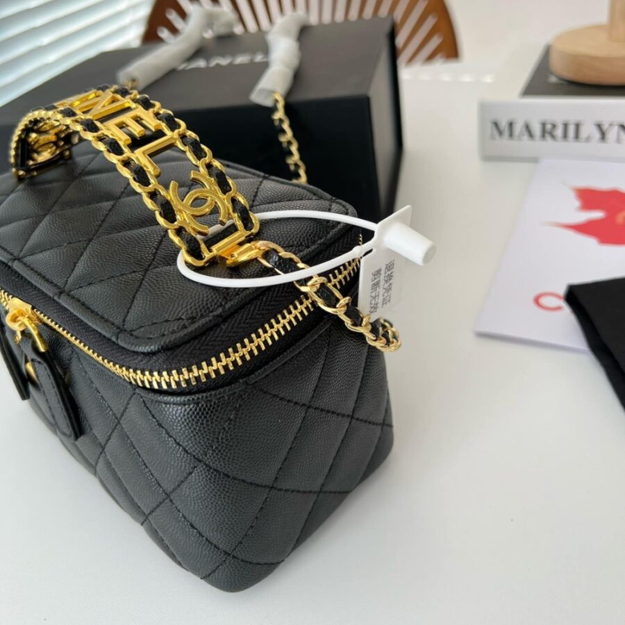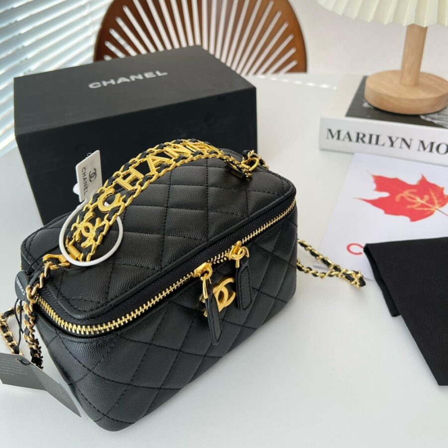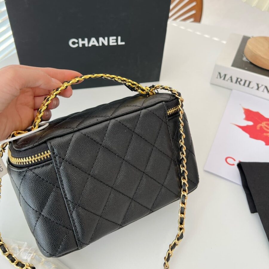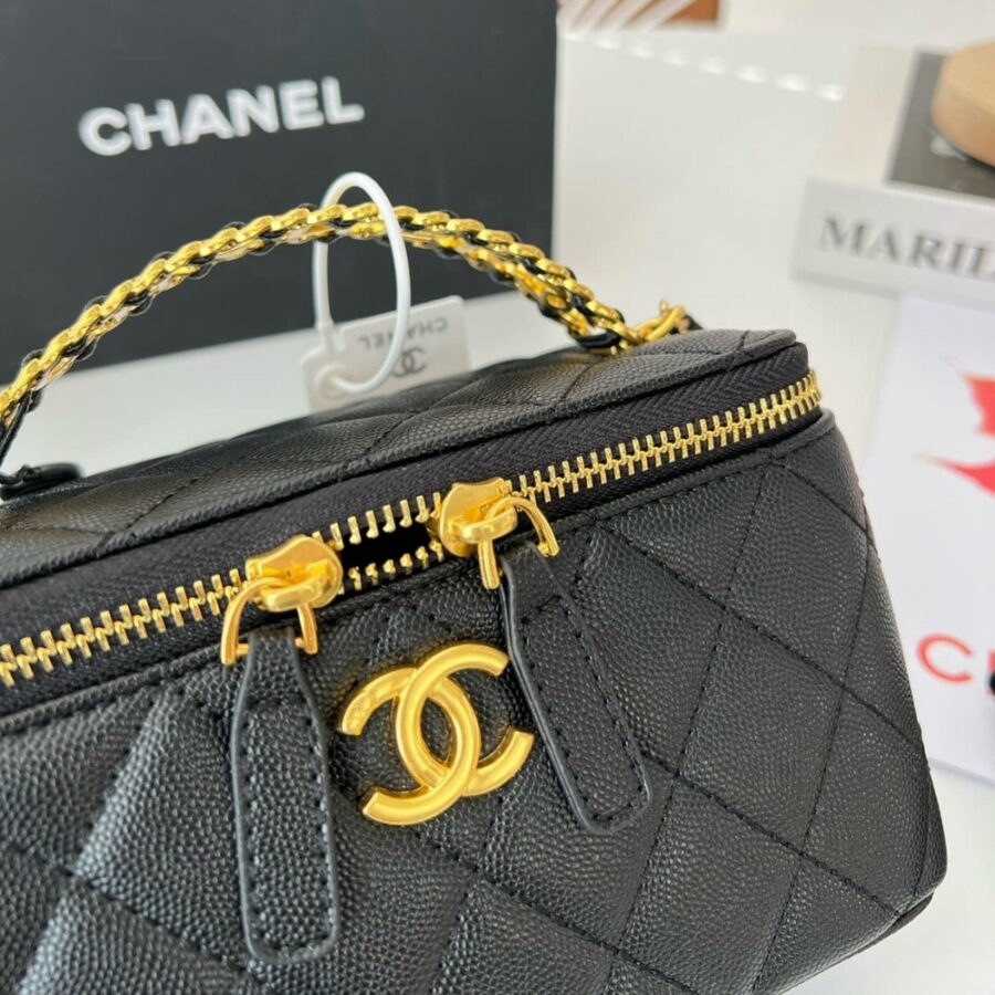 Chanel Top Handle Long Vanity Case With Chain Black 17Cm