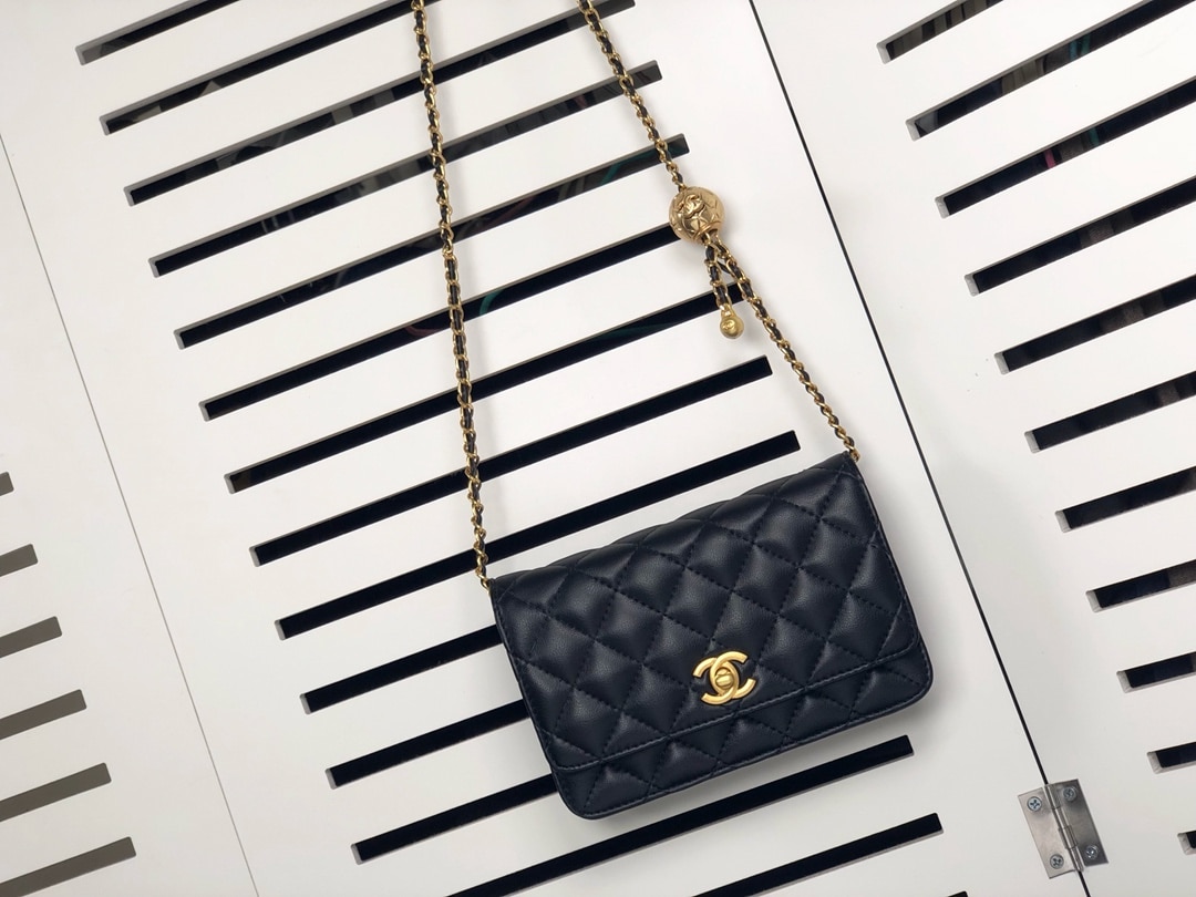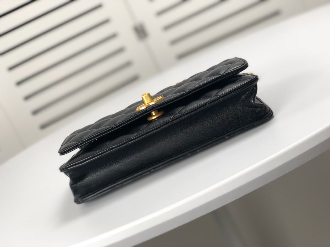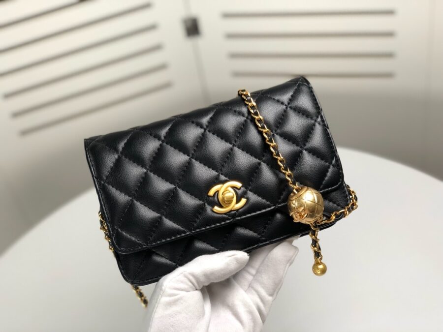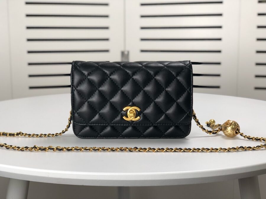 Chanel Woc Falp Pearl Crush Bag With Chain Black 19Cm