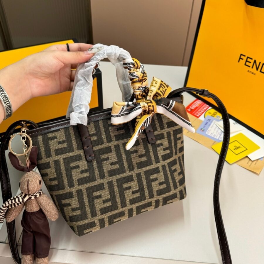 Fendi Mini Roll Ff Jacquard Mini Bag Brown 18Cm