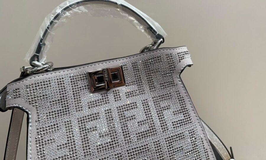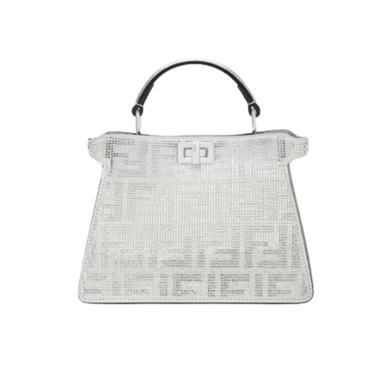 Fendi //Peekaboo Iseeu Petite //Silver Leather Bag With Crystal Ff Motif //21cm
