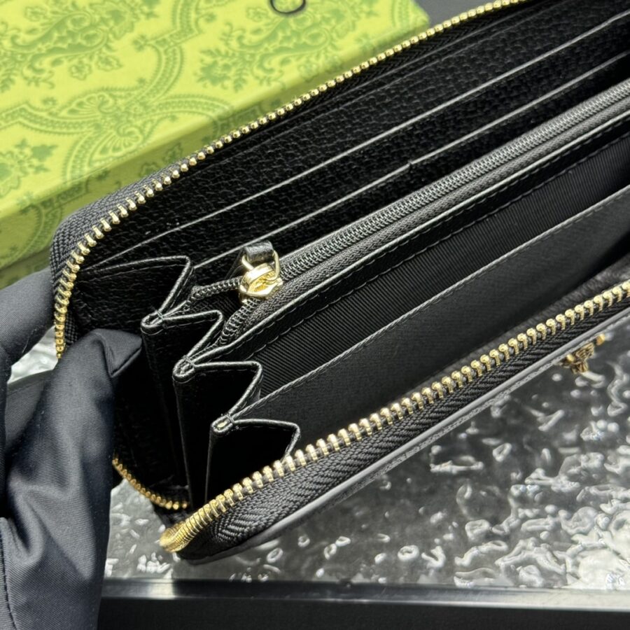 Gucci Animalier Leather Zip Around Wallet 523667 DJ20T 1000 19 cm / 7.5 inches