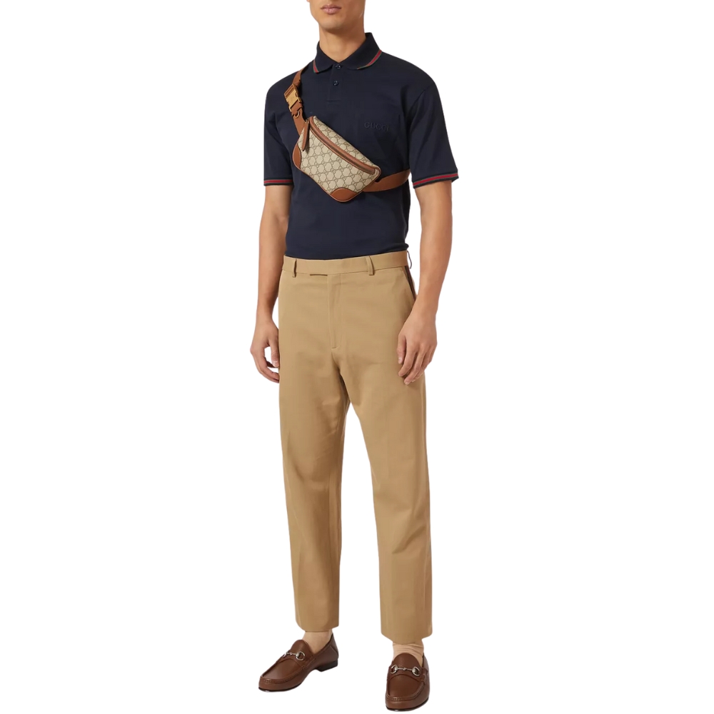 This Gucci belt bag reimagines the house’s iconic codes with a contemporary flair. Crafted from GG Monogram coated fabric, it features an open pocket for added functionality and an adjustable strap for a customisable fit.