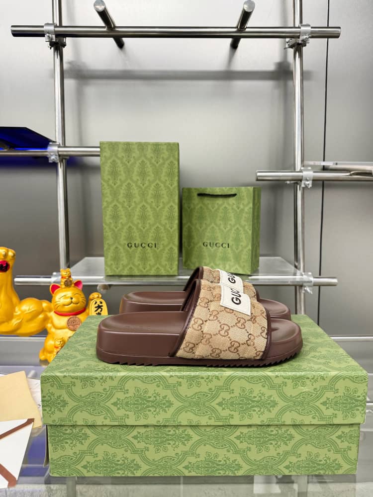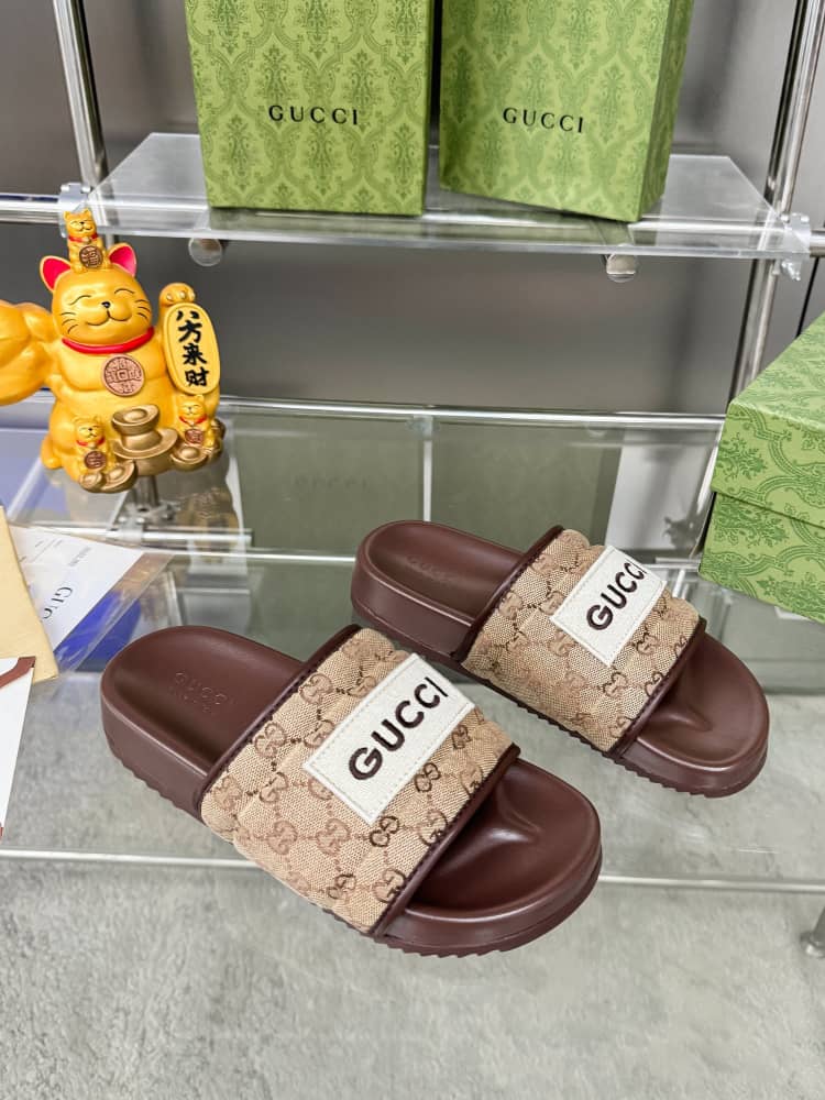 Gucci Gg Horizontal Strap Sandals With Tag In Brown