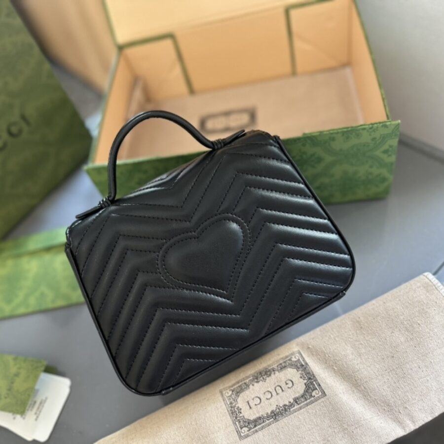 Gucci Gg Marmont Mini Top Handle Bag Black And Black 702563 DTDFV 1000/ 22 cm / 8.7 inches