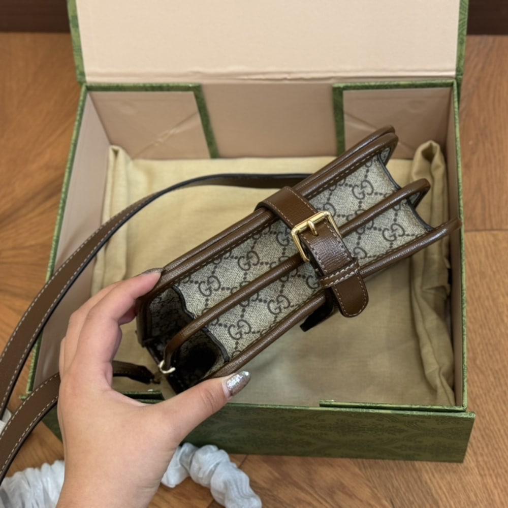 Gucci GG Supreme Shoulder Bag Interlocking G Brown 20Cm / 7.87 inches
