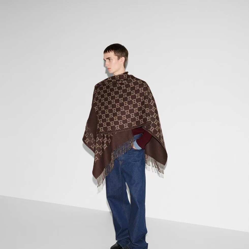 Gucci GG Wool Jacquard Cape Brown And Beige 140Cm
