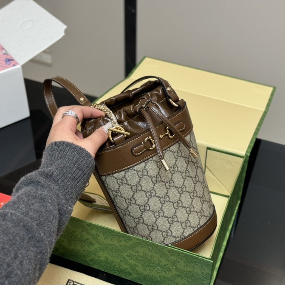 Gucci Horsebit 1955 Small Bucket Bag Brown 18Cm