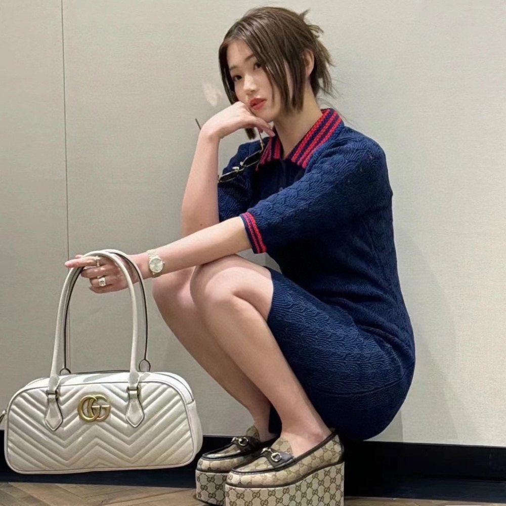 Gucci Marmont Small Top Handle Bag White 25Cm