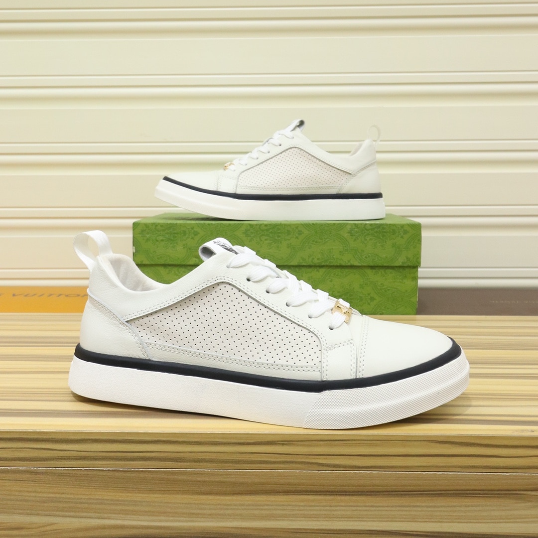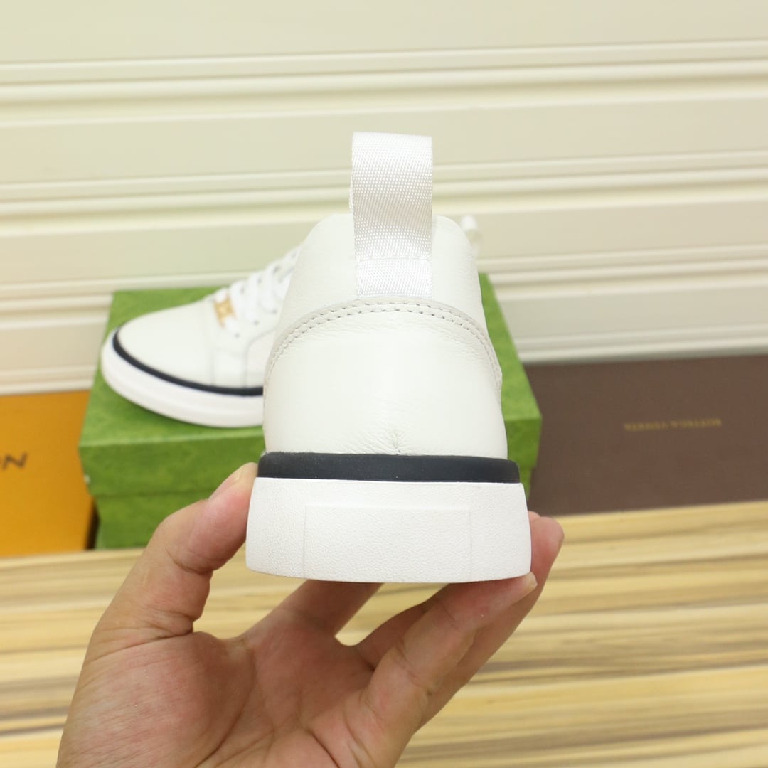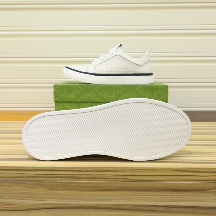 Gucci Men’S Platform Sneaker Leather White With Black Edge