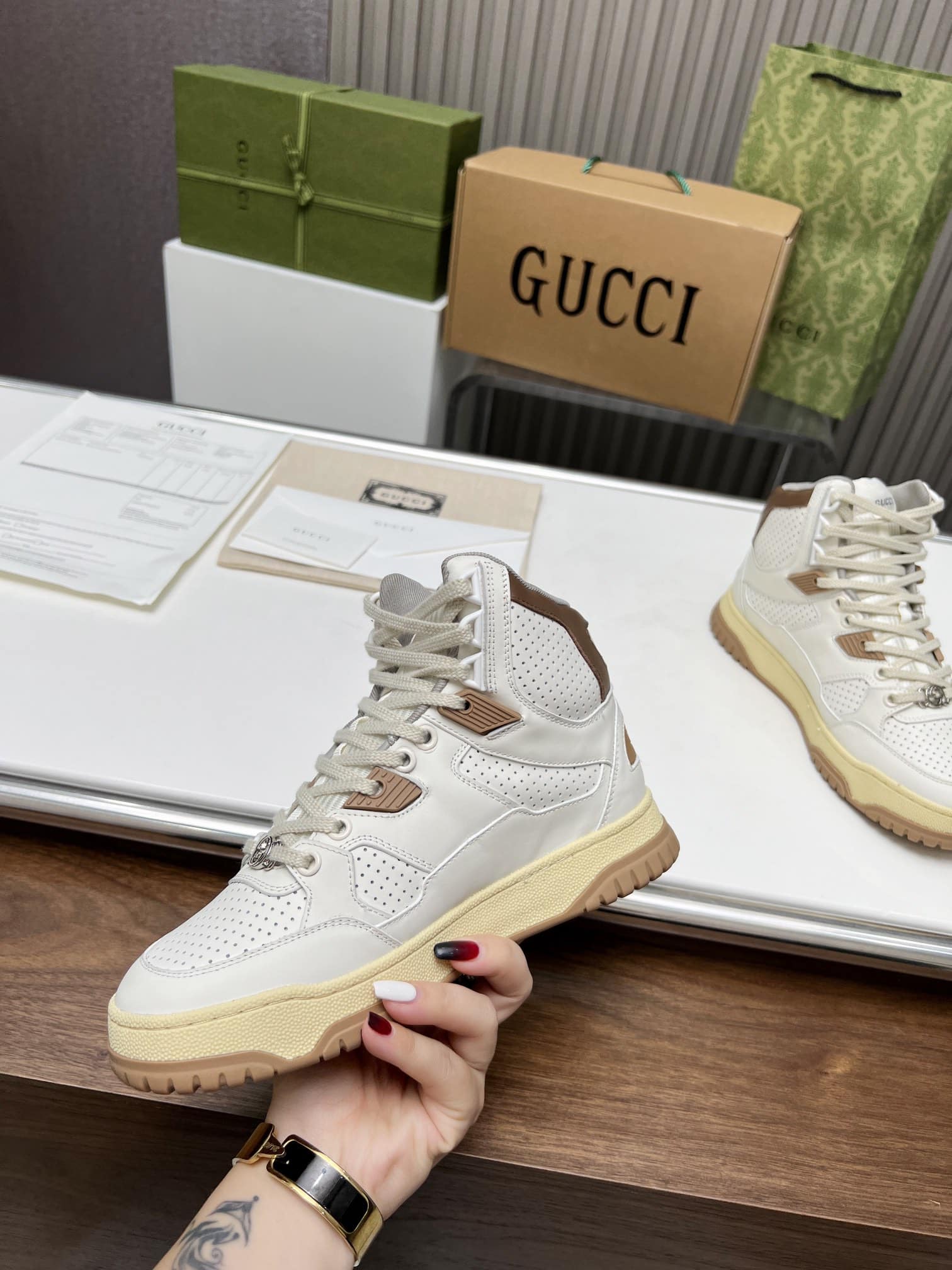 - Off white leather