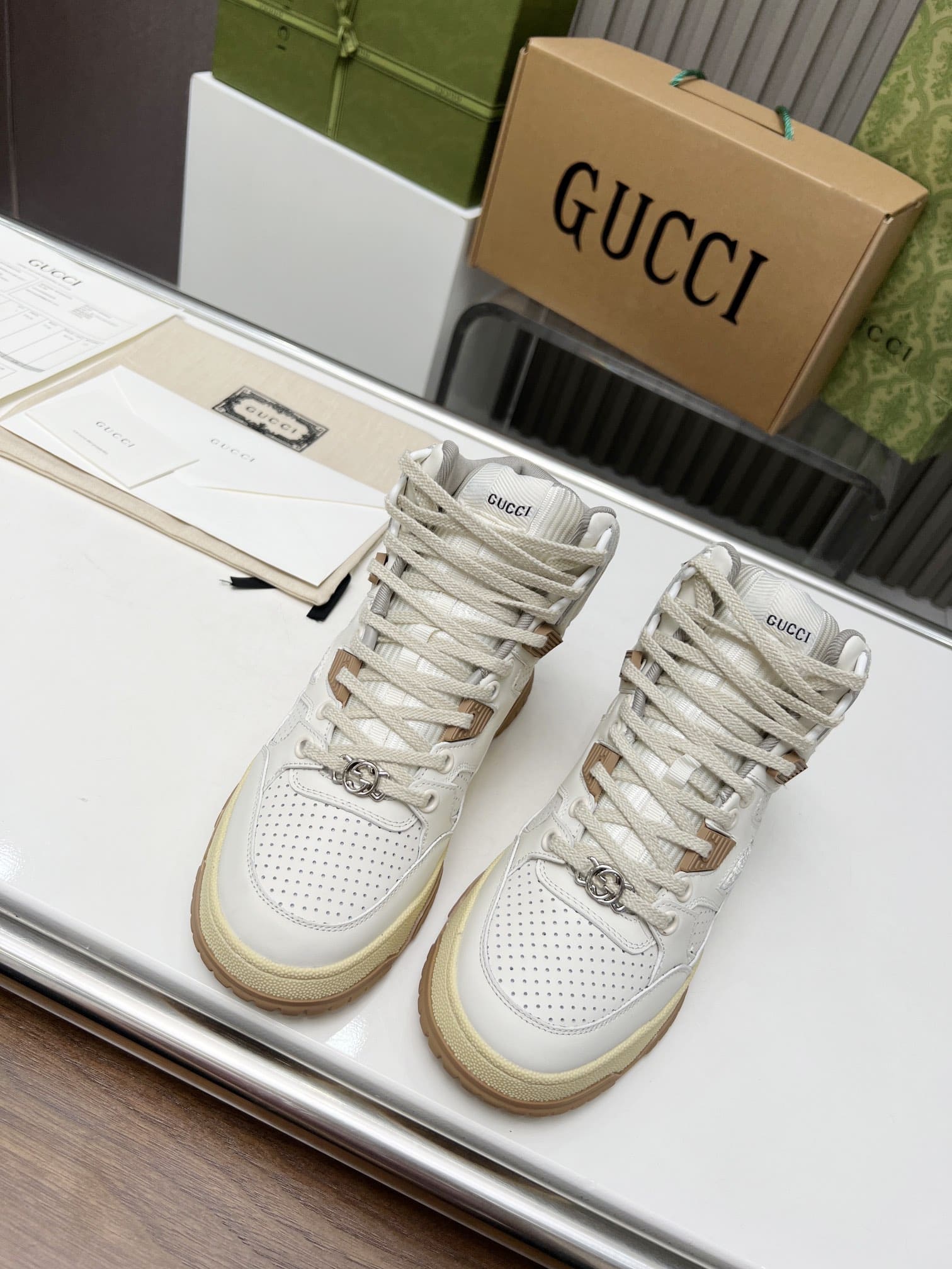 Interlocking G detail on laces