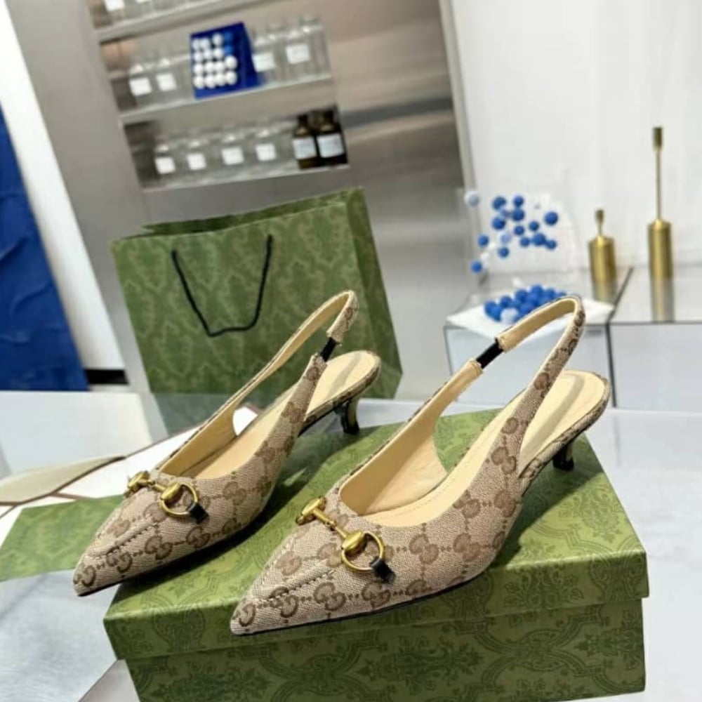 Gucci Women’S Slingback Pump With Horsebit Gg Canvas Beige And Ebony 782627 2Hk80 9763