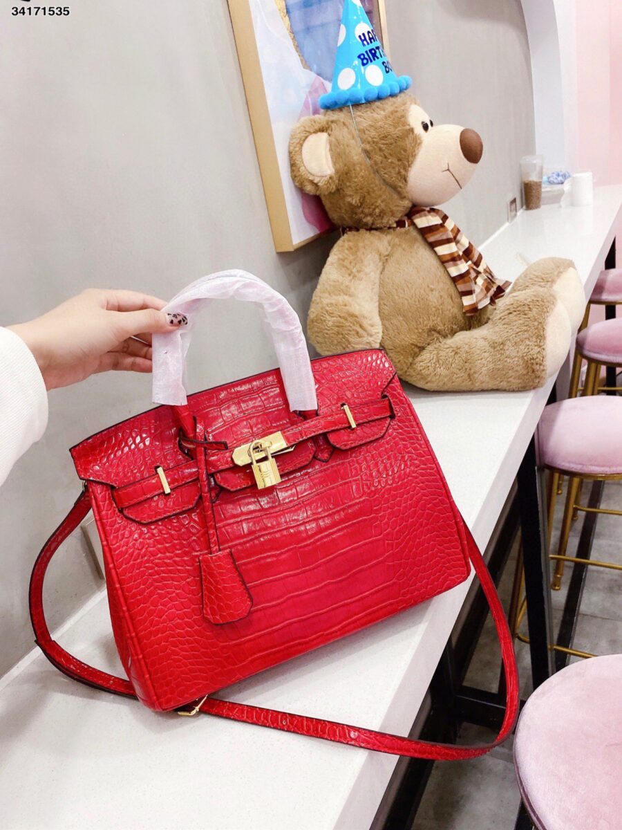 Hermes Birkin 30 Red Noir Shiny Porosus Crocodile / 30Cm Red