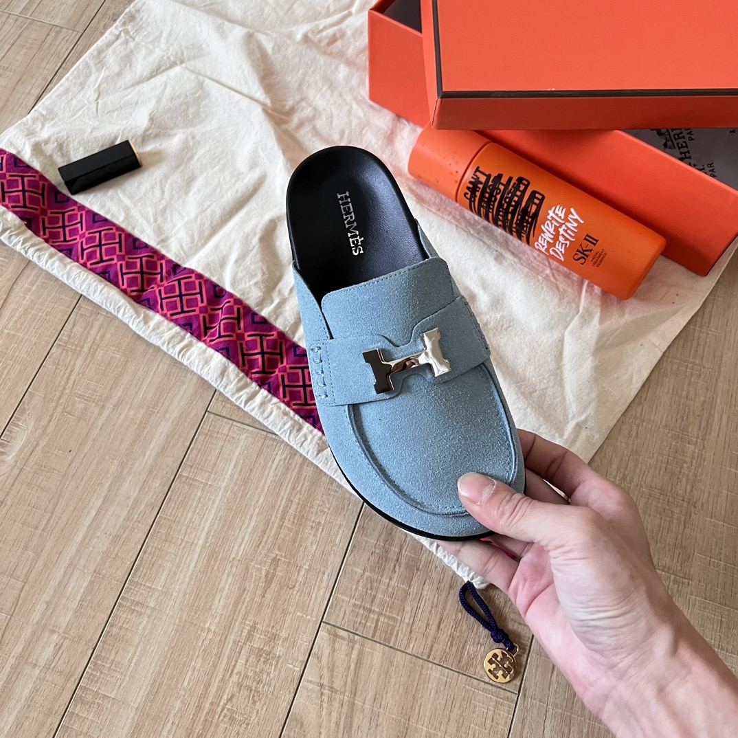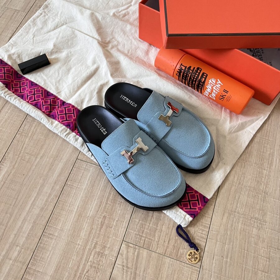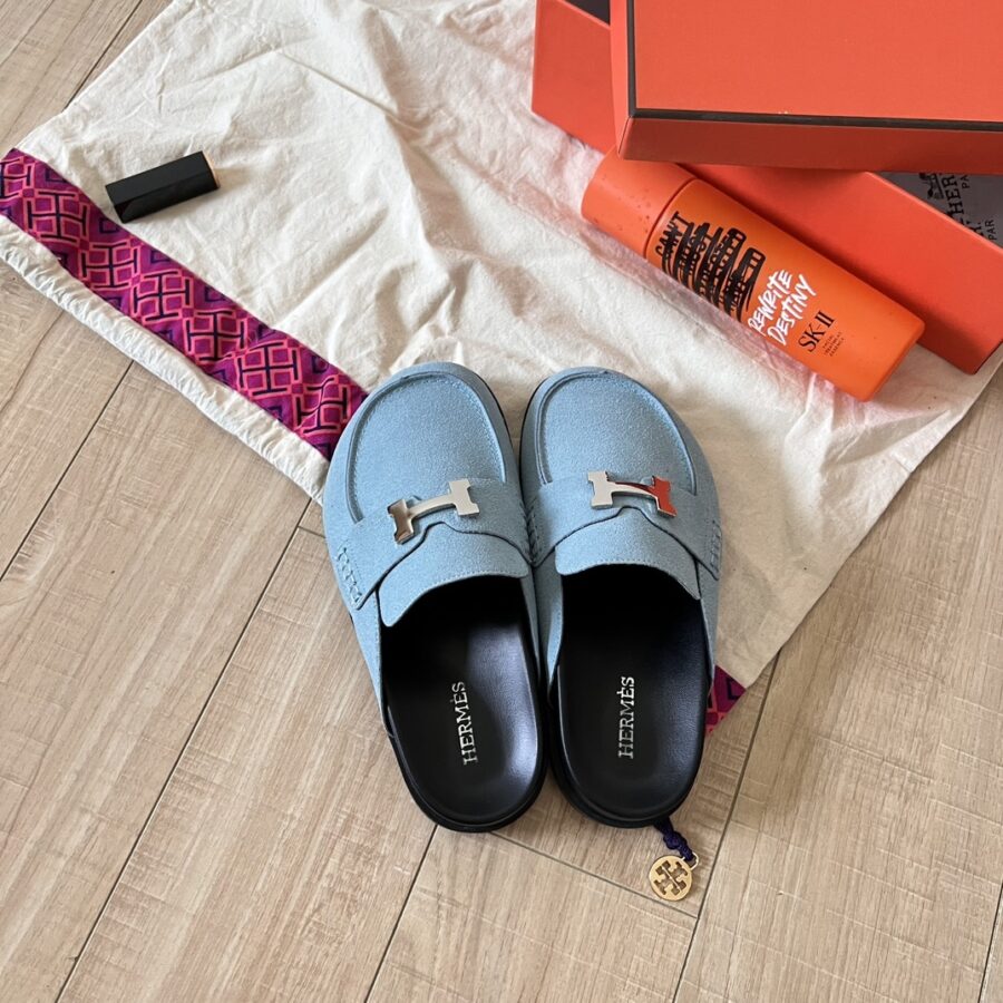 Hermes Go Mule H Sandal Blue