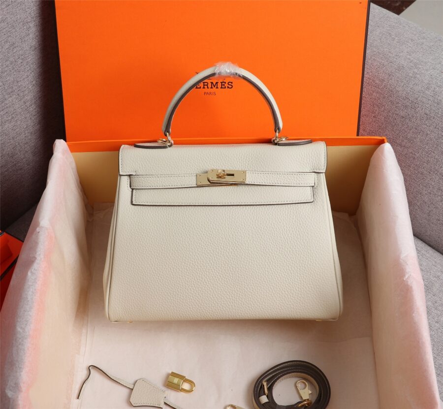 HERMES KELLY WHITE SELLIER ROUGE EPSOM GOLD HARDWARE 25CM
