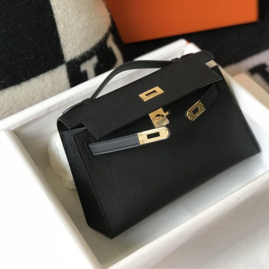 Hermes Mini Kelly Pochette Gold Toned Hardware Black 22Cm