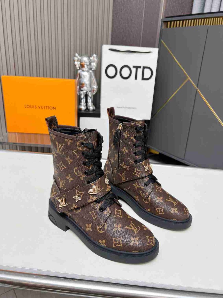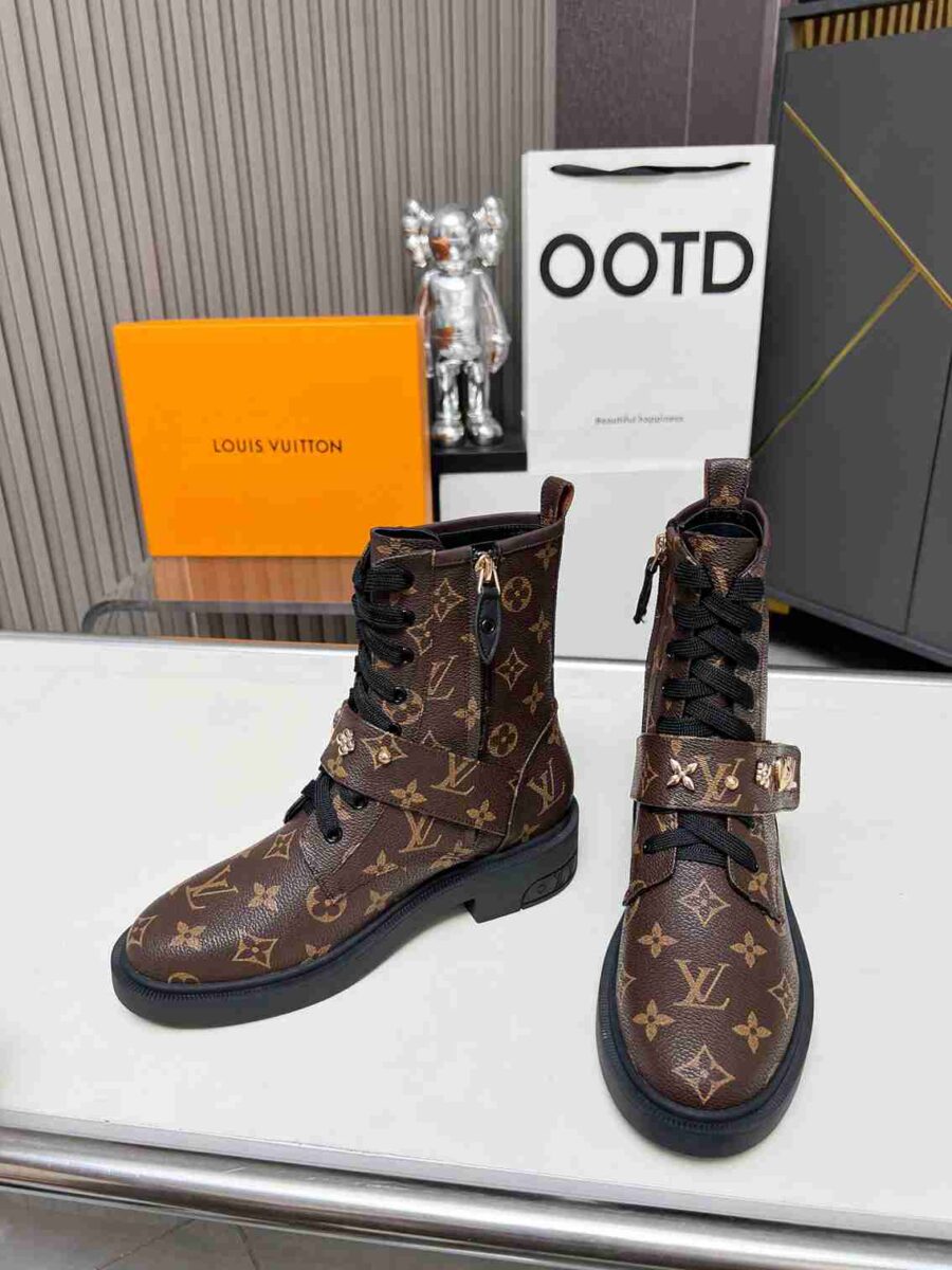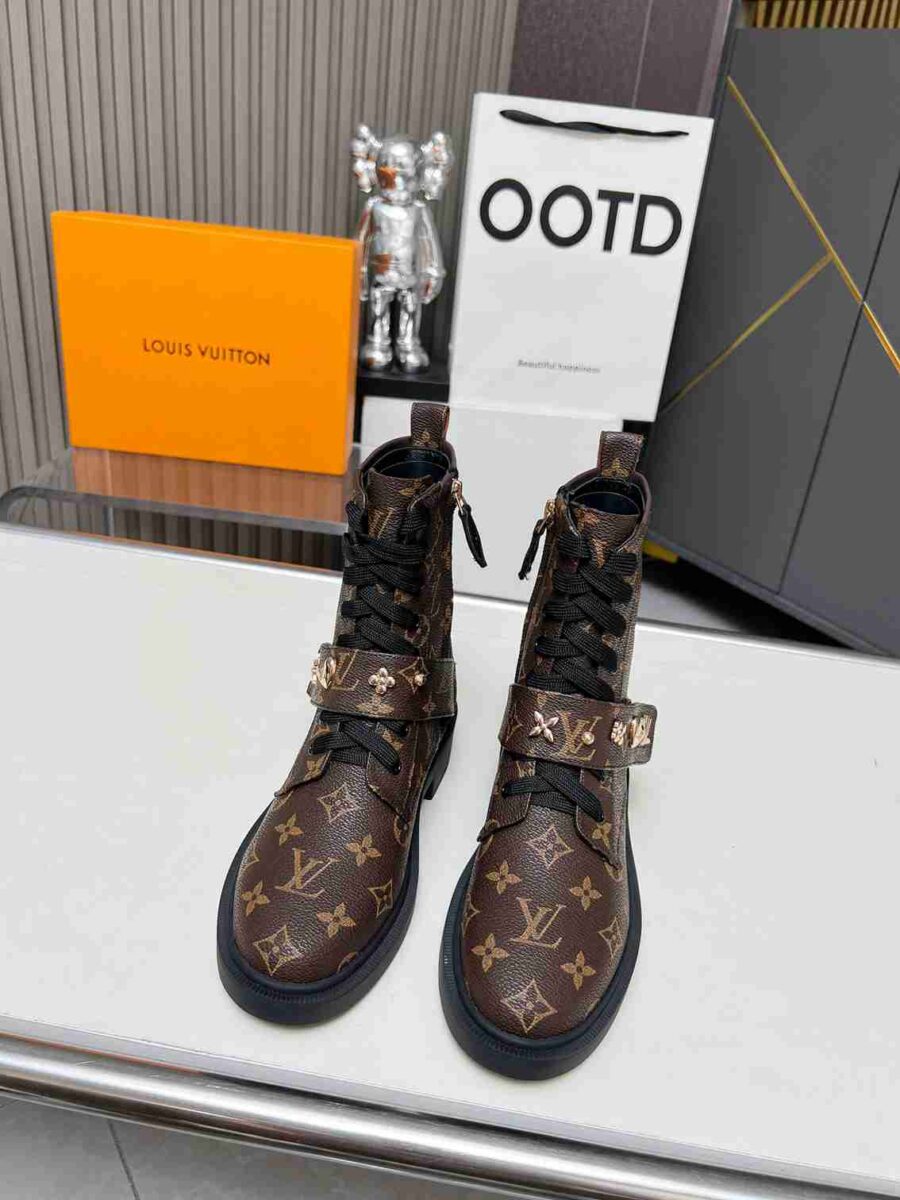 - Louis Vuitton lettering on tongue