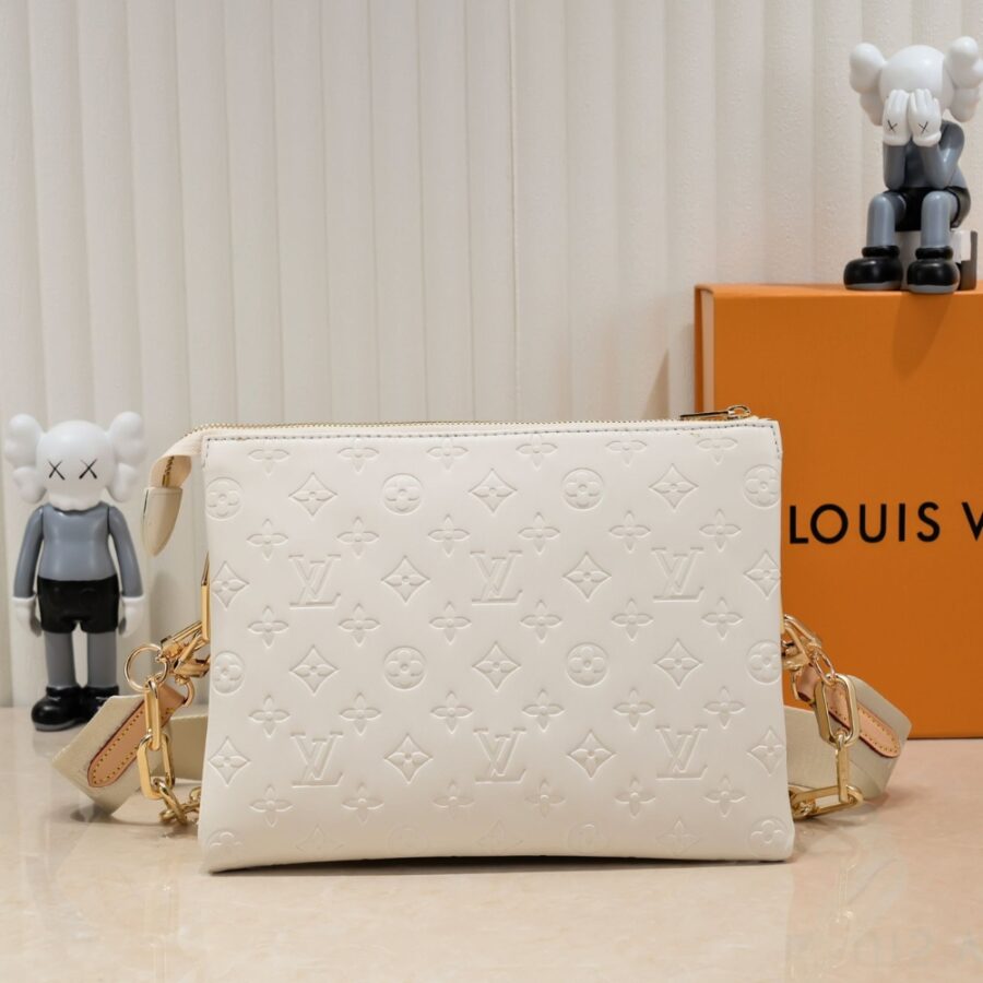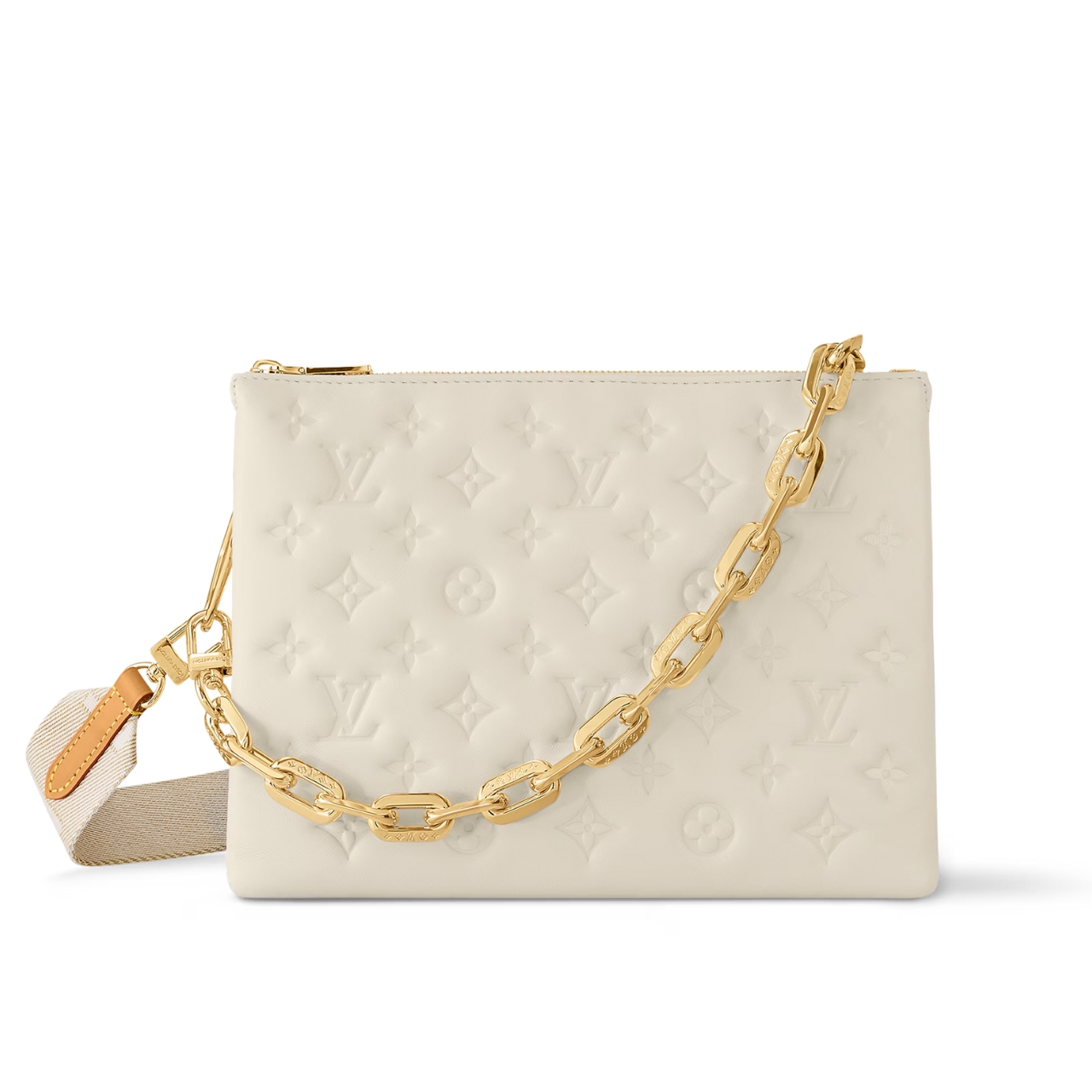 The Coussin PM handbag is made from Monogram-embossed puffy leather. It can be worn cross-body with the strap, styled as a short-shoulder bag, or comfortably tucked under the arm. The pillow-like Coussin bag brings style to the most simple look, giving it an effortless fashion-forward allure.