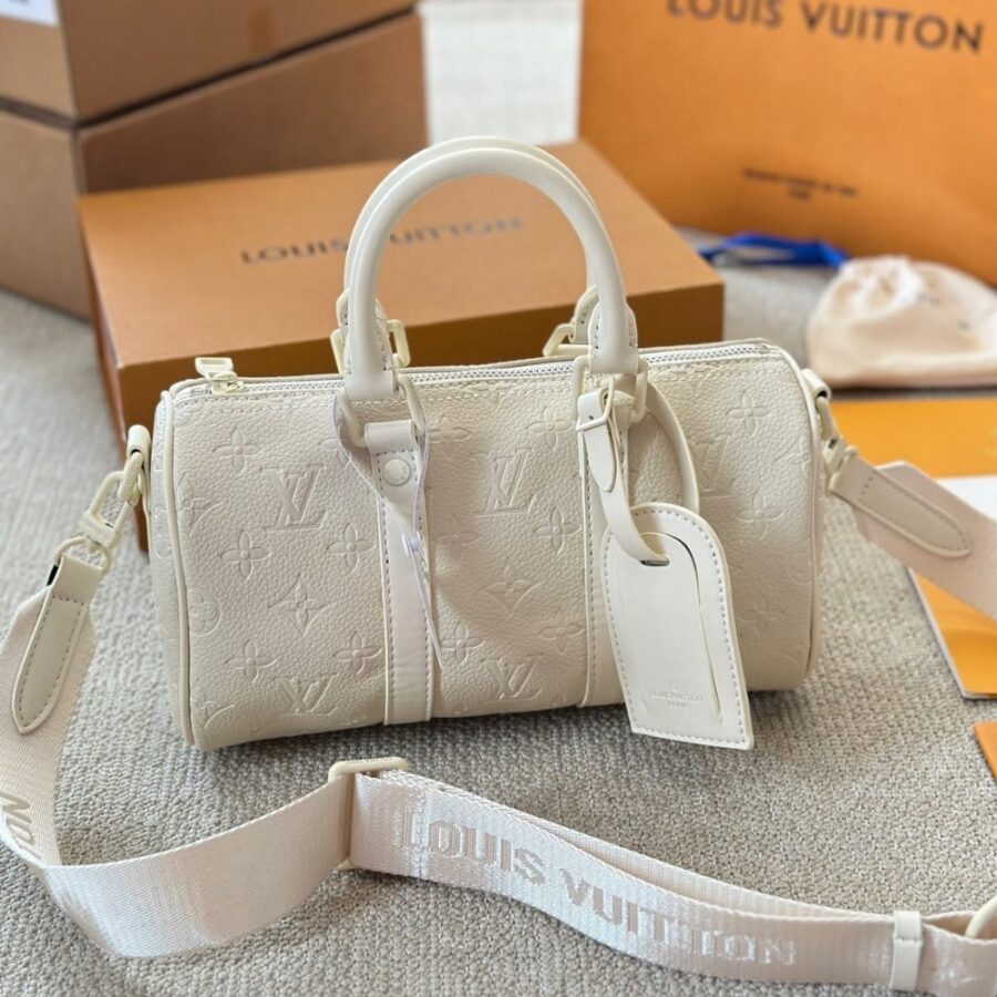 Louis Vuitton Keepall Bandoulière 25 / Monogram Leather / Cream White / 9.8 x 5.9 x 4.3 inches / Handbag / Crossbody Bag