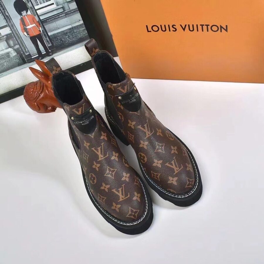 The LV Beaubourg Chelsea ankle boot is revisited this season in a combination of smooth leather and iconic Monogram canvas. This casual-chic model comes on a chunky yet lightweight micro outsole with a pronounced tread. Contrast stitching around the welt gives a refined finish to this stylish update of a classic Chelsea boot.