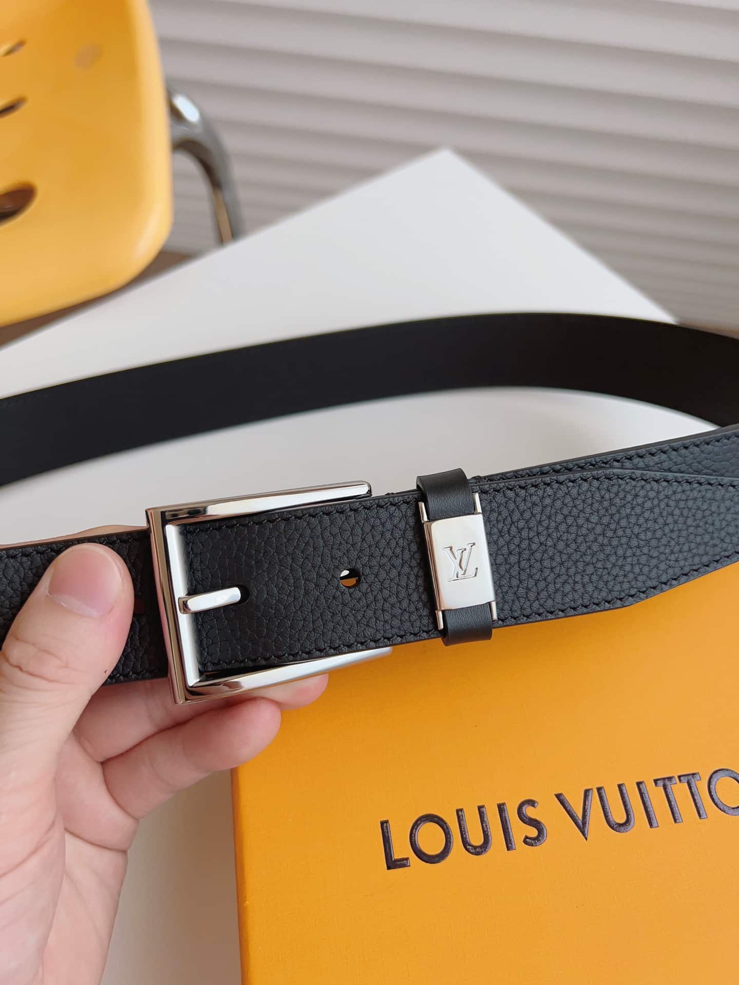 Louis Vuitton Lv City Pin Belt Silver Hardware Black 35Mm M0542S