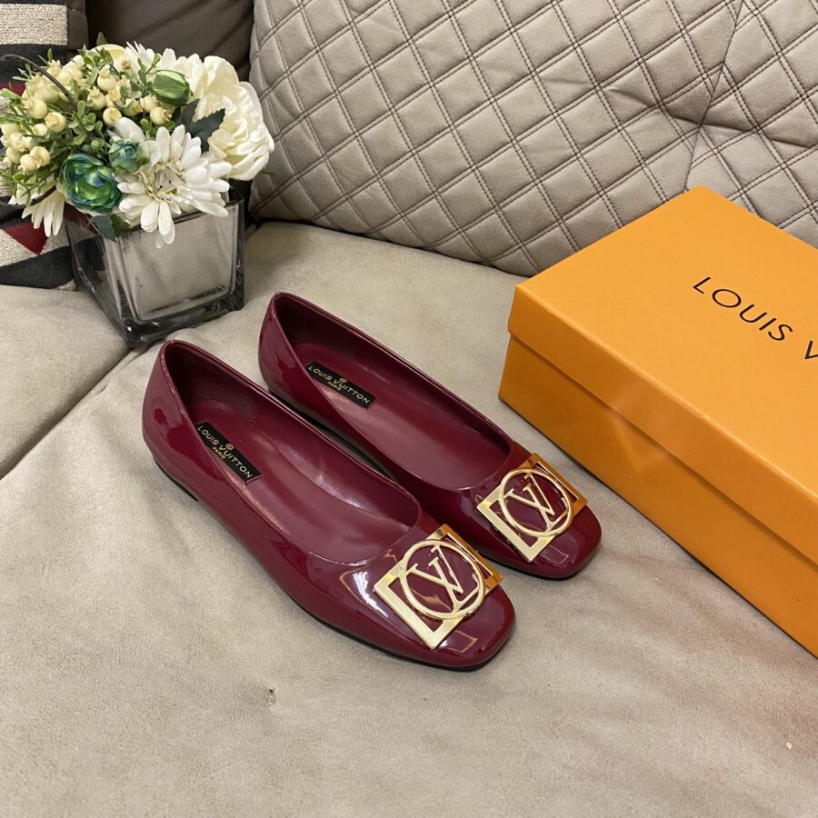 Louis Vuitton Lv Logo Wine Red Ballerina
